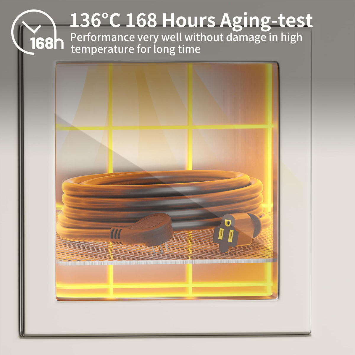 Q: How flexible is the HUANCHAIN extension cord?A: The extension cord is made from high flexible vinyl, allowing it to bend easily without breaking. It has been tested to withstand 65,000 bends, ensuring a long service life.