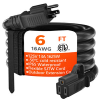 Huanchain Indoor Outdoor Black Extension Cord 6 Ft Waterproof, 16/3 Gauge Flexible Cold Resistant Appliance Extension Cord Outsi