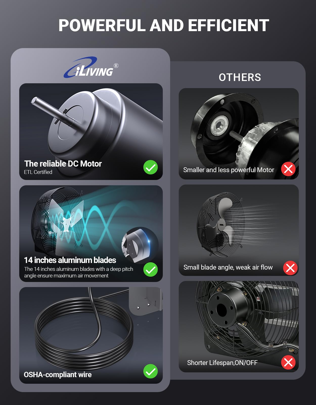 Introducing The Iliving 14'' Wall Mounted Shutter Exhaust Fan, The Perfect Solution For All Your Ventilation Needs. With Its Powerful Dc Motor, This Exhaust Fan Is Designed To Deliver Top-Notch Performance And Keep Your Space Well-Ventilated. Whether You Need A Window Fan, Kitchen Exhaust Fan, Attic Fan, Garage Fan, Shop Fan, Greenhouse Fan, Radon Fan, Or Any Other Type Of Ventilation Fan, This Versatile Product Has Got You Covered. This Innovative Exhaust Fan Features Automatic Shutters And Temperature And Humidity Controls With Variable Speed For Optimized Airflow. It Is Also Suitable For A Variety Of Applications Including Household Ventilation, Paint Booth Exhausts, Solar Attic Fans, And Harsh Environments. You Can Also Expect Durability And Long-Lasting Performance From This Product - Its Built To Last While Providing Exceptional Functionality. With Its Wide Range Of Uses And Reliable Performance, The Iliving 14'' Wall Mounted Shutter Exhaust Fan Is A Must-Have For Anyone In Need Of Effective Ventilation Solutions. So Whether You'Re Looking For An Extractor De Aire Para Bao Or A Solar Exhaust Fan For Your Shed, This Product Is A Wise Investment That Will Meet All Your Needs. Don'T Wait Any Longer - Get Your Hands On This High-Quality Wall-Mounted Shutter Exhaust Fan Today!