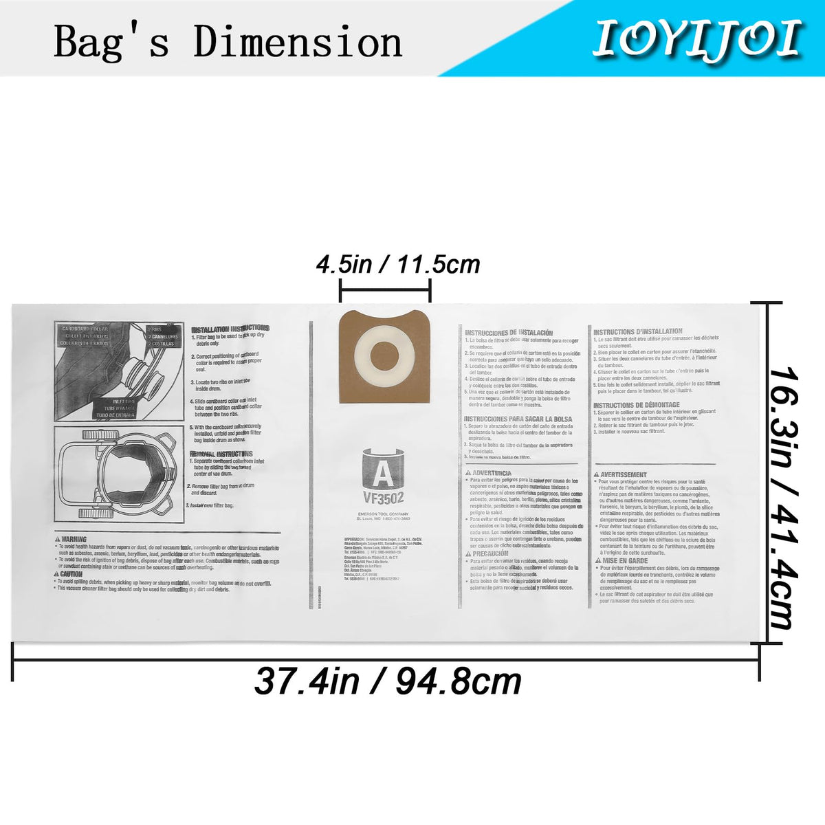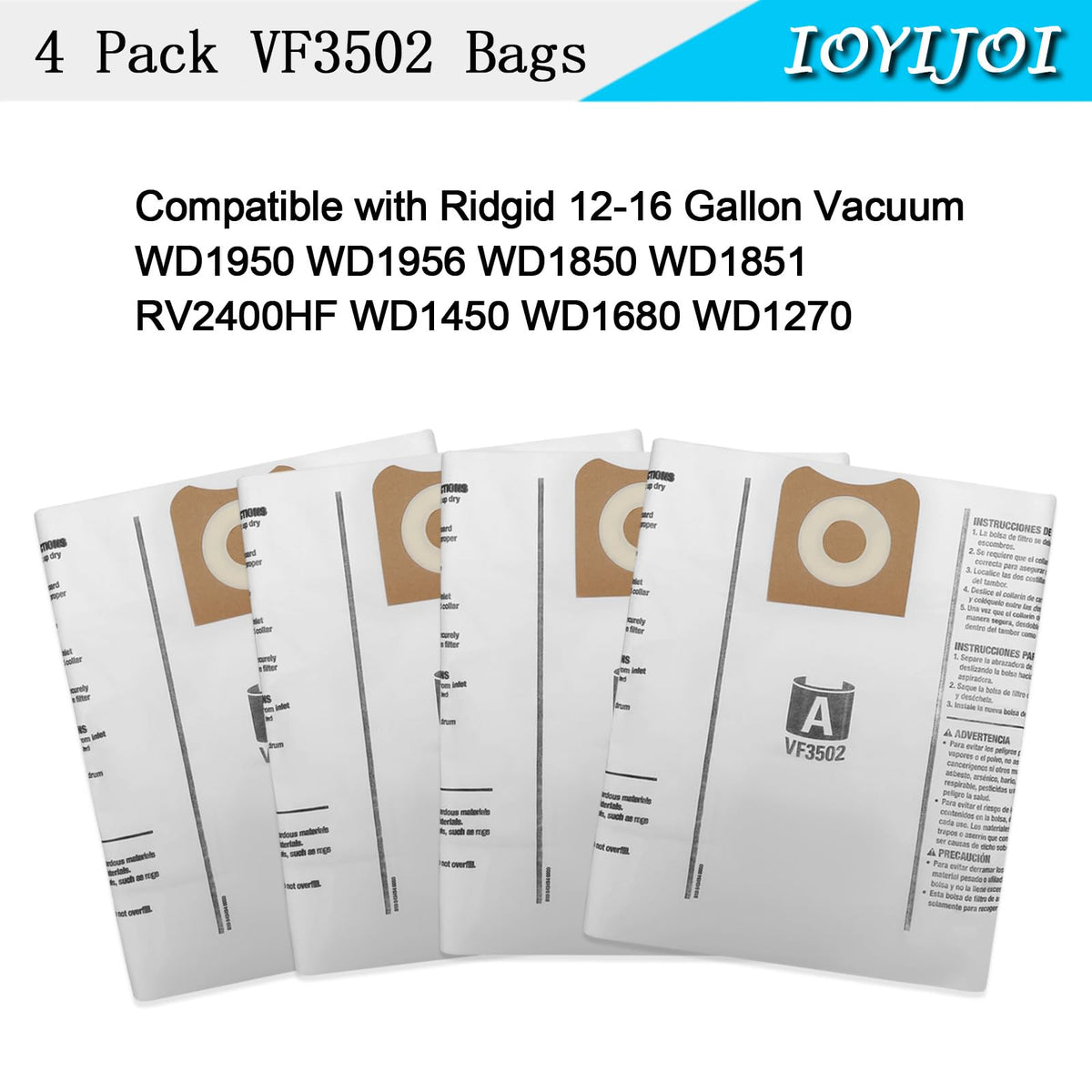 Q: Can I use the VF3502 dust bags with other vacuum brands?A: The VF3502 dust bags are specifically designed for compatibility with Ridgid vacuums, particularly models in the 12-16 gallon range. It's advisable to check compatibility with your specific model for optimal performance.