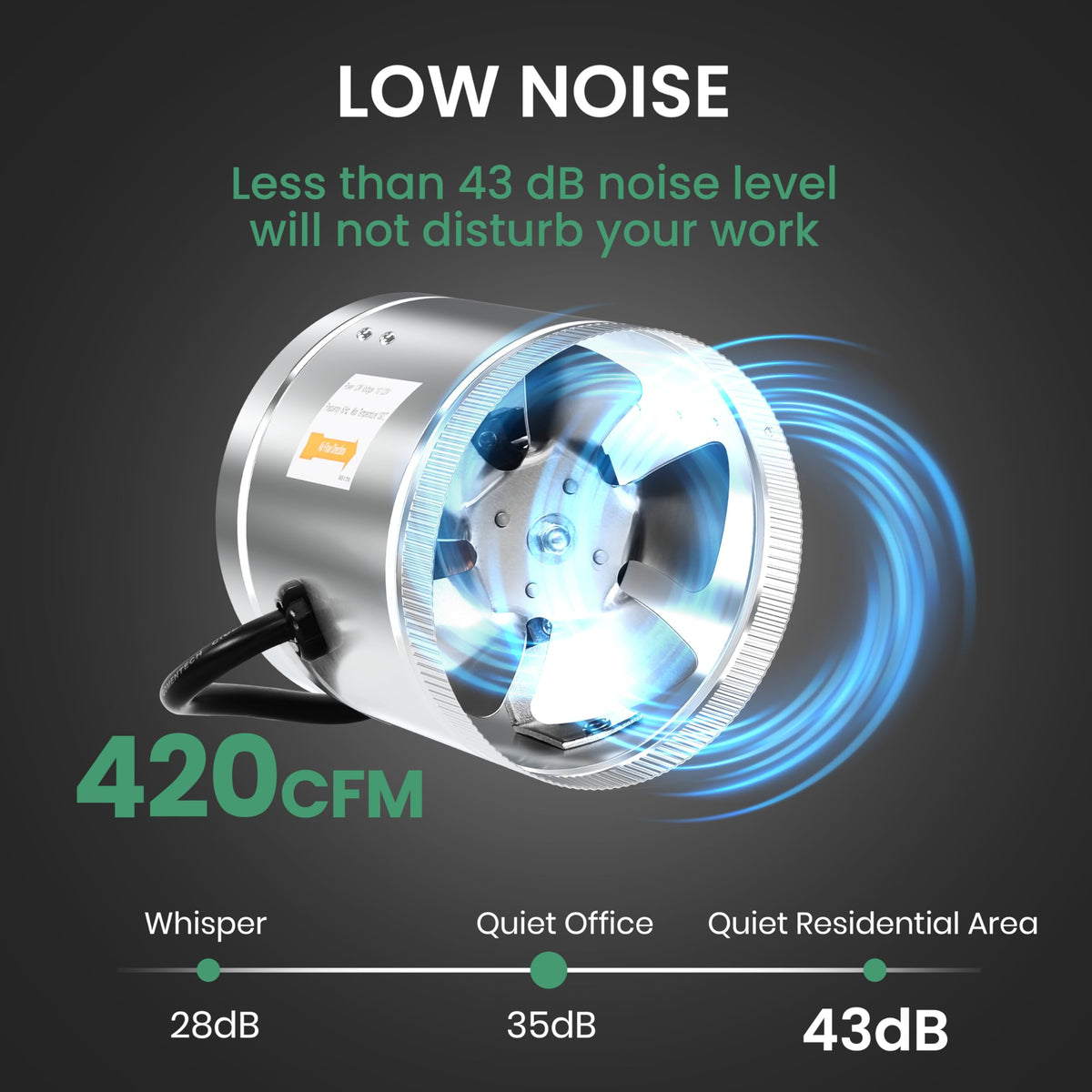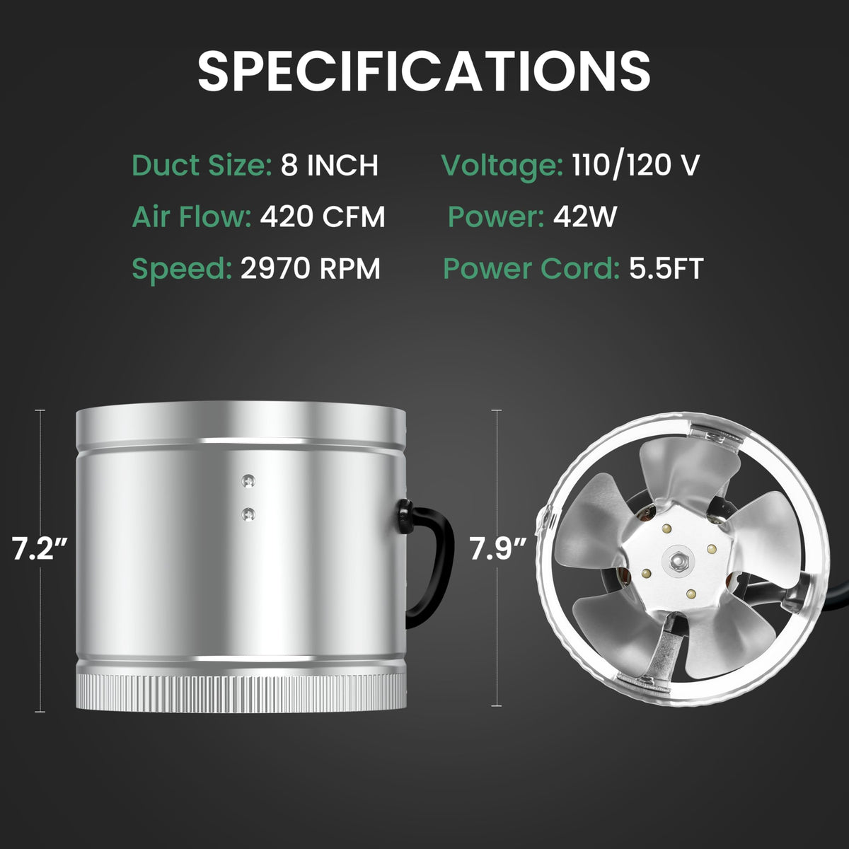 Ipower 8 Inch Inline Duct Fan 420 Cfm, Hvac Booster Exhaust Ventilation Fan With Low Noise For Basements, Bathrooms, Grow Tents,