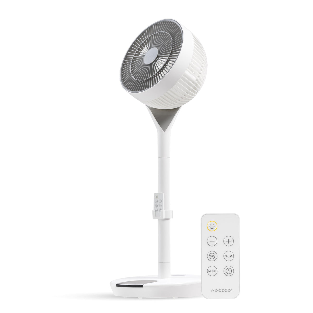 Maximize Air Flow In Your House, Office, Or Dorm With This Woozoo Remote Controlled Fan. The Powerful Yet Compact Standing Fan Comes With A Remote To Let You Control Your Desired Settings From Across The Room. Five Speed Settings Let You Adjust Air Flow To Your Desired Strength, And The Optional Natural Breeze Setting Imitates The Feeling Of The Outdoors. The Fan Oscillates Left And Right To Reach The Whole Room And Features Six Vertical Manual Tilt Settings. Enjoy Extra-Quiet Cooling On The Circulators Virtually Silent 'Low' Setting For When You Want To Study, Sleep, Or Relax Without Any Noise Distractions, And Use The Optional Timer Settings From 30 Minutes To 8 Hours To Save Energy.
