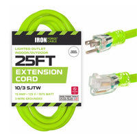Iron Forge Cable 10 Gauge Extension Cord 25 Ft, 10/3 Heavy Duty Extension Cord 25 Foot 3 Prong Lighted End, Sjtw Weatherproof Li