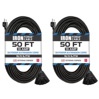 Iron Forge Cable 2 Pack 3 Outletoutdoor Extension Cord 50 Ft, 16/3 Sjtw Black Extension Cord With Multiple Outlets 3 Prong, 13 A
