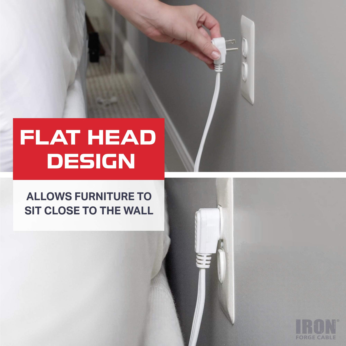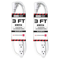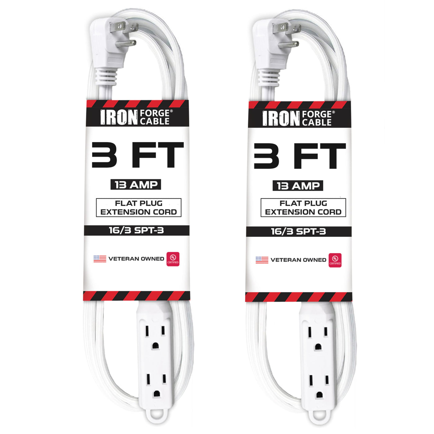 Iron Forge Cable 2 Pack Of 3 Ft Flat Extension Cord Multiple Outlets 16/3 Flat Plug Indoor Extension Cord White Multi Pack 3