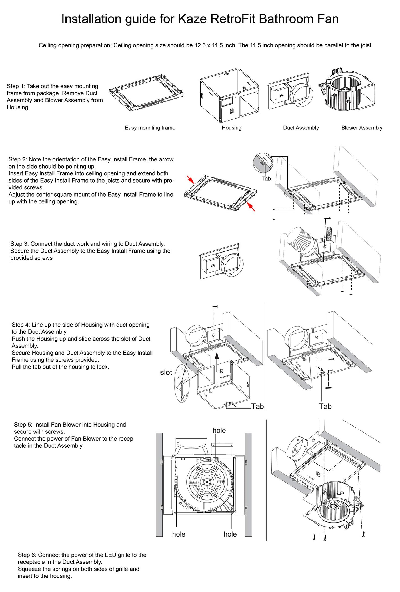 Ceiling Opening Size - Please Note The Ceiling Opening Requirement Is 11 3/8 X 10 1/2 Inch, Resizing Your Ceiling Opening Will Be Needed If Existing Fan Size Is Different.