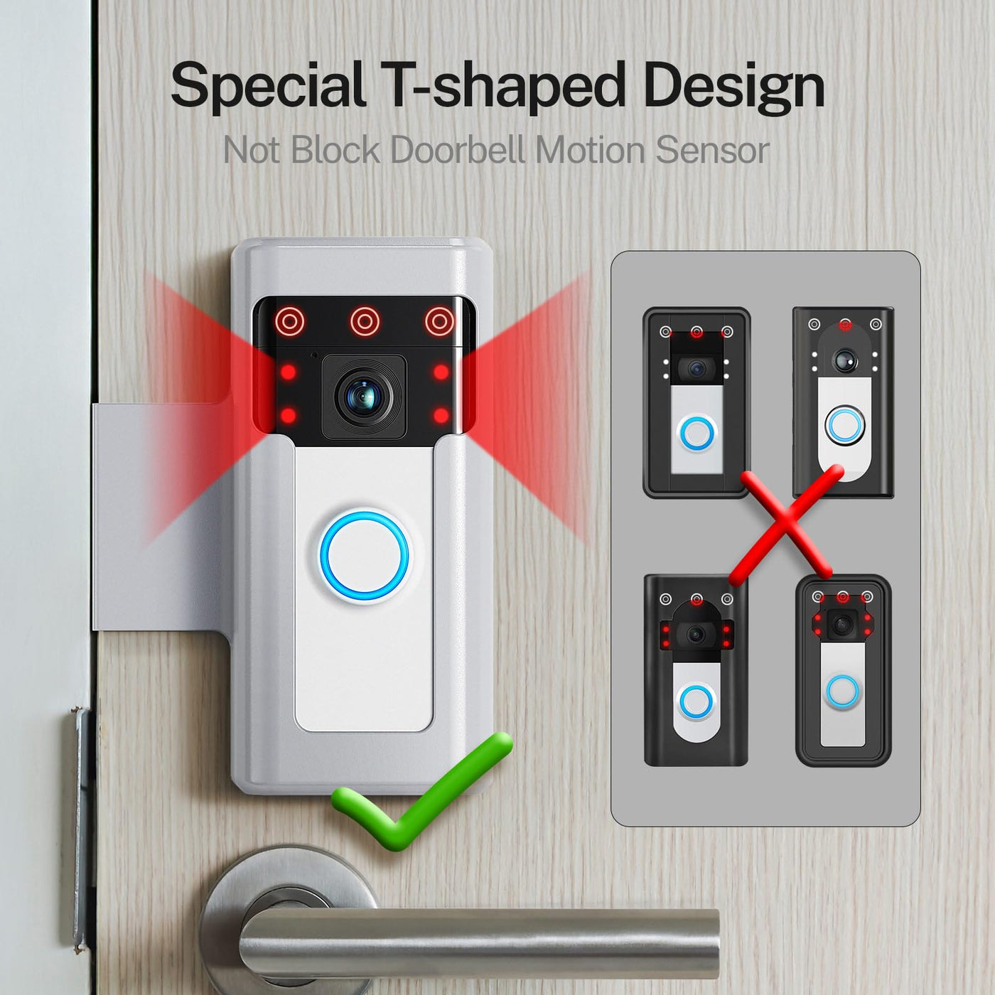 Kimilar Full Metal Anti-Theft Video Doorbell Mount Compatible With Ring/Blink Wireless Video Doorbell, Not Block Doorbell Motion Sensor, No-Drill Mounting Bracket Wedge For Home Rentals Office, White