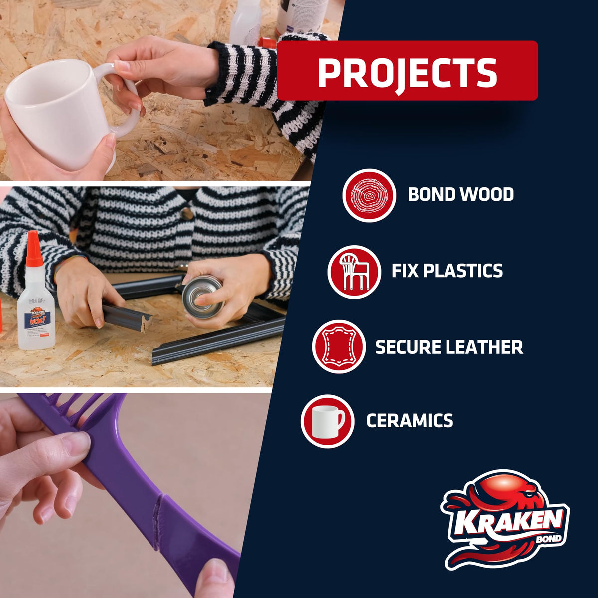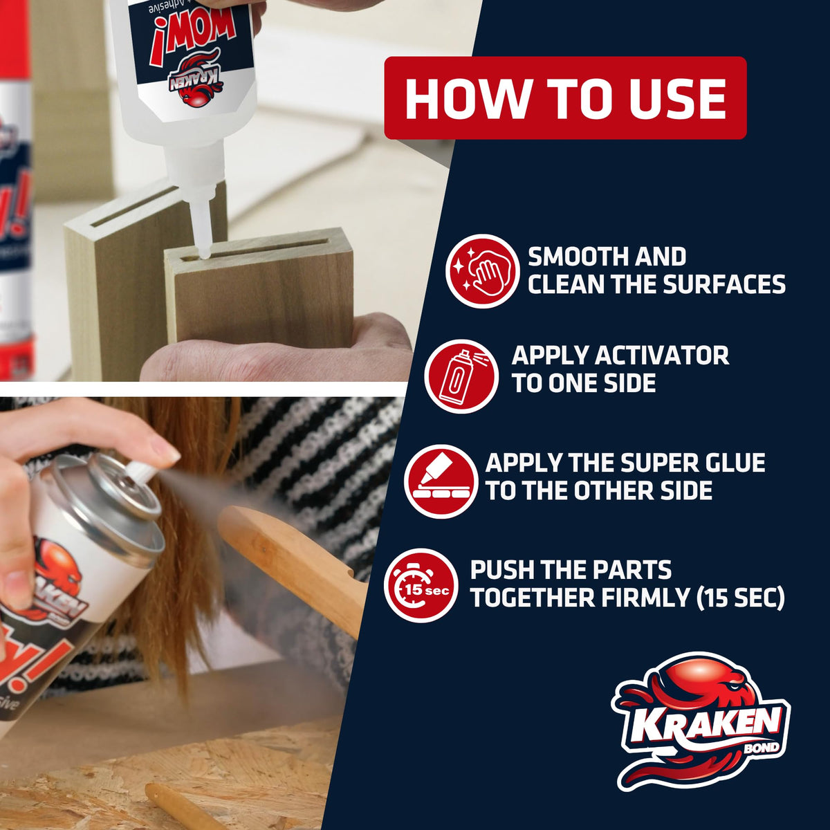 Kraken Bond Wow Ca Glue With Spray Adhesive Activator, Cyanoacrylate Glue, Ca Glue With Activator, Ca Glue For Woodworking, Crazy Glue, Craft Glue, Fast Ca Glue, For Building And Crafting, -Easy Strong Bonding -Heavy Duty - -Unique Super Formula -Quickly Curing Time -Super Fast Adhesive Set -Manufacturers Amateurs Choice -No-Clog Cap -Versatile -Quality Warranty