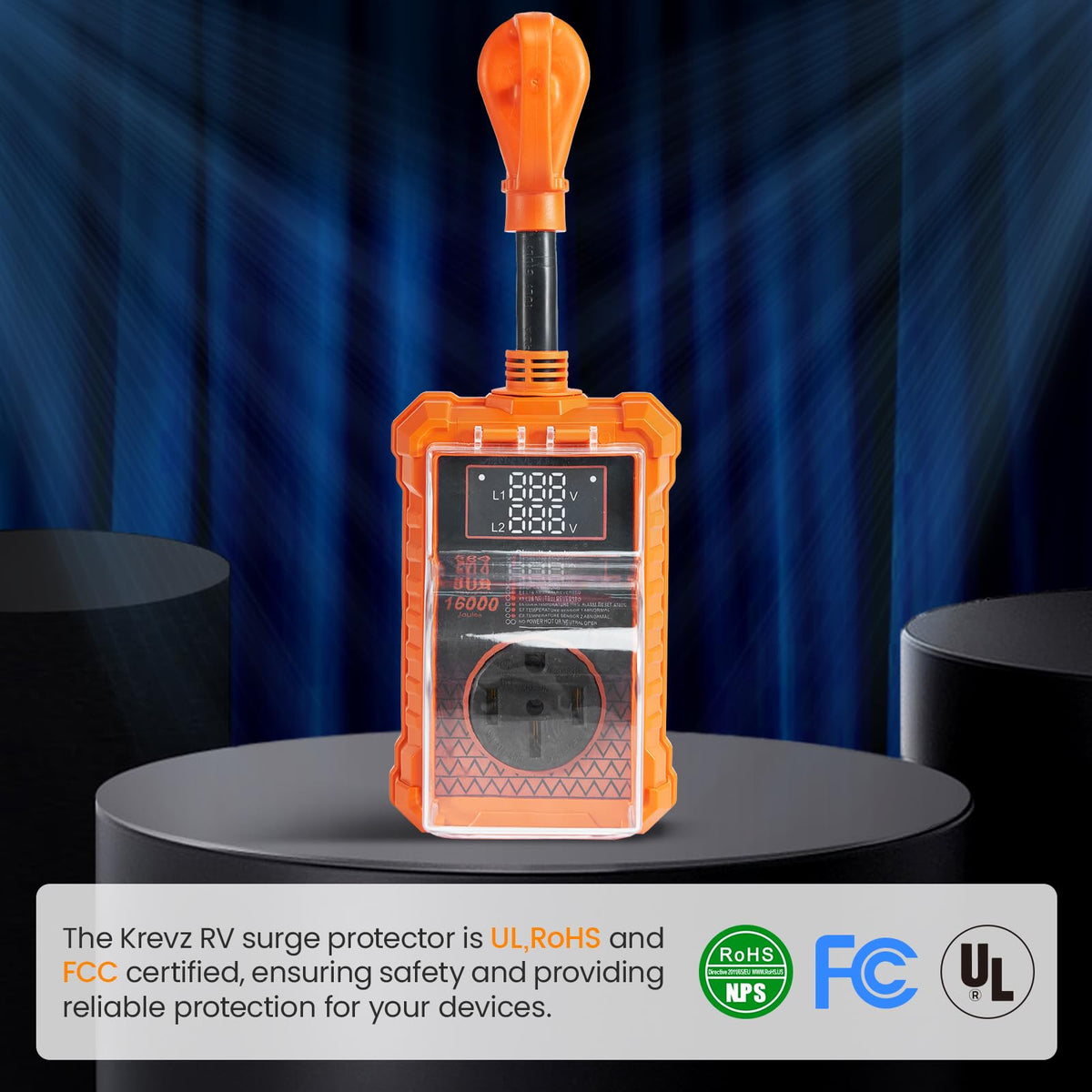 Krevz 16000 J Rv Surge Protector 50 Amp, Upgraded Dual Monitor Display Rv Power Surge Protector With Safety Certification, High/
