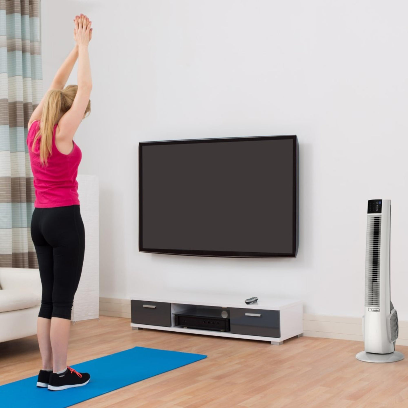Laskos Hybrid Tower Fan With Remote Control Features Space-Saving Design, Which Makes It Ideal For Home Or Office. This Powerful Electric Fan Provides Over 25% More Air Velocity Than Traditional Tower Fans. Includes A Multi-Function Remote So You Can Power The Tower Fan On Or Off, Select From 4 Fan Speeds, Set The Auto Shut-Off Timer, And Control The Widespread Oscillation Feature--All From The Comfort Of Your Bed Or Easy Chair. The Built-In Carry Handle Makes It Easy To Move The Portable Fan From Room To Room. Features Laskos Trusted Safety Fuse Technology For Peace Of Mind. Simple Base Assembly Required.