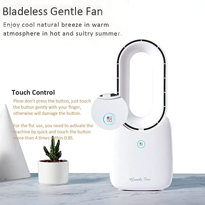 Bladeless Desk Fanthis Desk Fan Is Safe For Babies, Kids And Pets Since The Bladeless Design, Innovative Bladeless, Safe Air Inlet Grille, Reference Fluid Dynamic That Increases Air Volume While Blowing Out Soft Air, Large-Slope Turbine Silent Air Duct, After Inhaling Air, Generates Powerful Wind Through Turbocharging, Place It In Your Bedroom And Office, Creates A Quiet, Cool Environment For You Esk Fan With 5 Colorful Led Lightwith A Colorful Gradient Light That Creates Different Effects To Suit Your Mood, In Addition,Kid-Friendly & Soft Led Will Help To Illuminate If Your Kids Are Afraid Of The Dark, Gentle Breeze Will Keep You Away From The Sultry Air Quiet Desk Fanusing A Combination Of Clever Physics And Aerodynamics, This Desk Fan Will Multiply The Air It Sucks In, So Uses Less Energy And Generates Less Noise In The Process You Can Use It In Your Bedroom And Office Table, The Base Of The Fan Has Silicone Pads So It Doesnt Slide Around Your Desk While Its Being Used Esk Fan With 3 Level Windthis Bladeless Fan With A Sensitive Touch Button To Change Wind Speeds To Meet All Your Needs Usb Cable And Adapter Are Needed For The Desk Fan To Work Though It Must Be Plugged In To Operate, It Has A Longer Lifespan And A More Stable Performance Than Those Rechargeable Desk Fans Your Satisfaction Is Our Prioritythis Fan Is Perfect For Office Desks Desktops Tables Personal Bedrooms Homes, Kiddies, And Pets We Do Everything In Our Power To Ensure You Receive The Perfect Product Every Time In The Event Of Any Issues Whatsoever With These Desk Fans, Please Feel Free To Contact Us