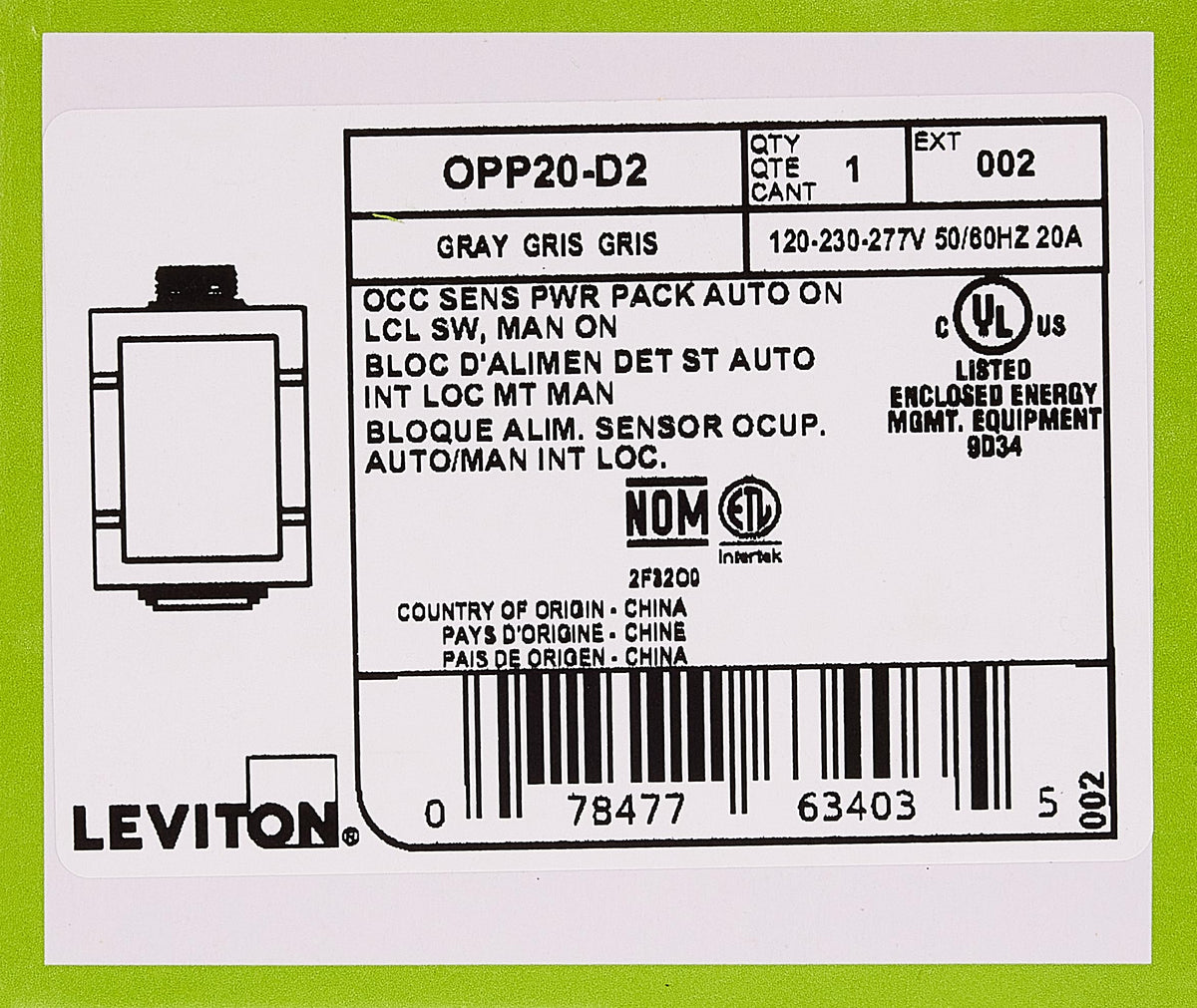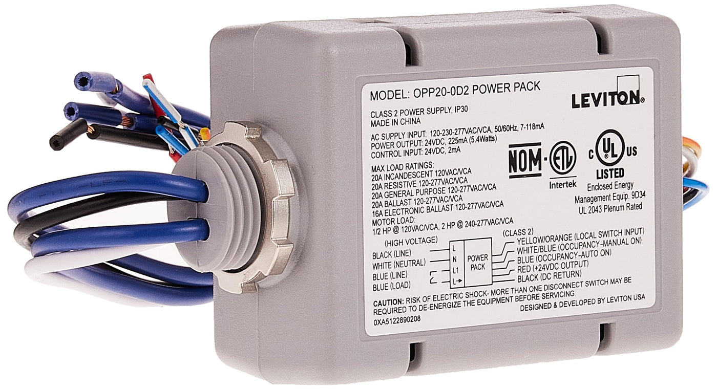Leviton Opp20 D2 20 Amp Super Duty Power Pack For Occupancy Sensors, Basic With Auto On, Manual On And Local Switch Inputs, Gray