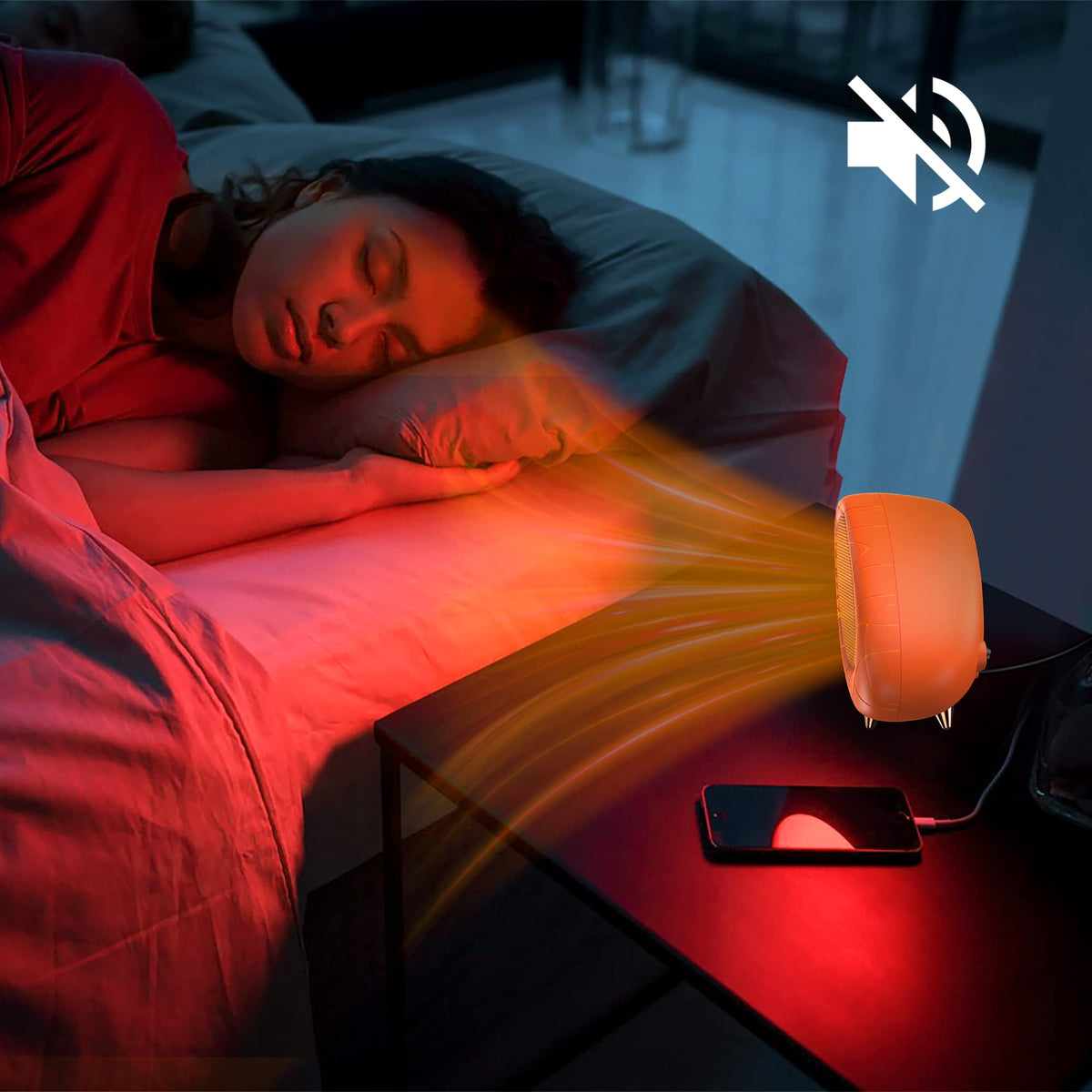 Q: Is the Lmkeji Desk Heater quiet enough for sleeping?A: Yes, the noise level of the Lmkeji Desk Heater is below 45dB, making it a quiet option suitable for use in bedrooms while sleeping, studying, or watching TV.