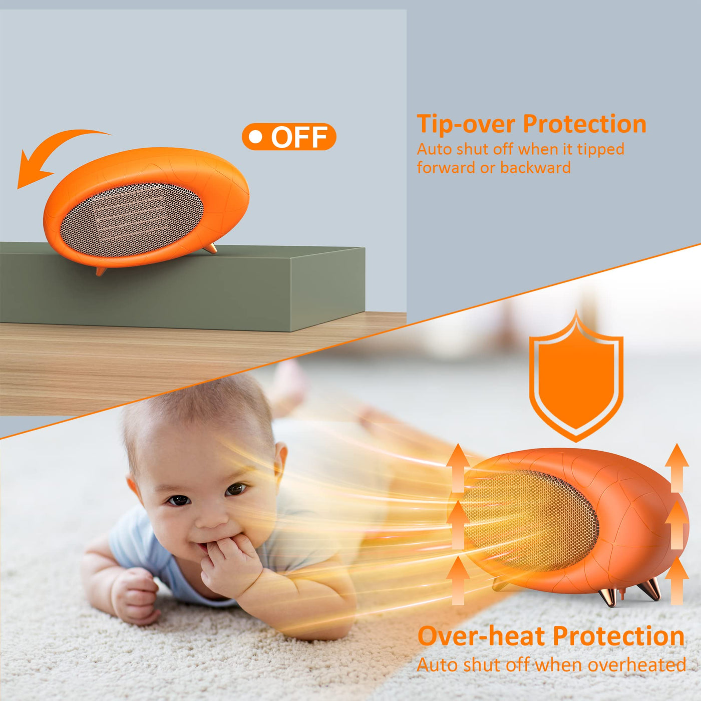 Q: What safety features does the Lmkeji Desk Heater have?A: The Lmkeji Desk Heater is equipped with a built-in safety system that automatically shuts off the heater when it overheats and powers off when tipped over, ensuring safe operation for indoor use.