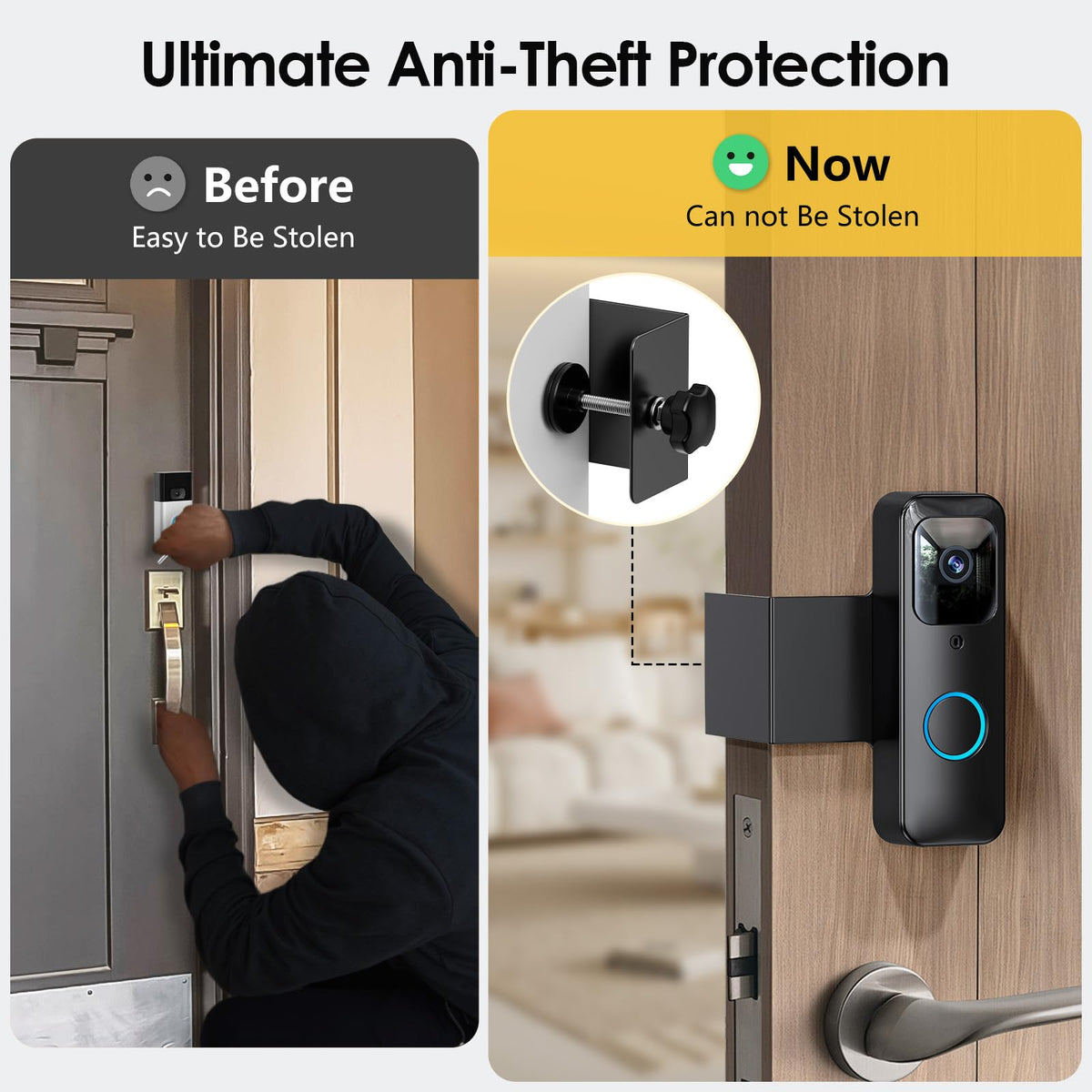Protect Your Blink Doorbell With This Anti-Theft, No-Drill Mount, Designed For Easy, Secure Installation Without Damaging Your Door. The Mount Features A Special Anti-Theft Design, Ensuring Your Doorbell Stays Safely In Place. Plus, The Open Design Ensures It Doesnt Block Your Blink Cameras Motion Sensors Or Two-Way Audio, Providing Clear, Uninterrupted Security. This Renter-Friendly Mount Requires No Drilling Or Adhesive, Making It Perfect For Apartments, Offices, Dorms, Or Any Rental Property. Simply Adjust The Fixed Clip To Fit Your Door, Then Place Your Blink Doorbell In The Shell And Clamp It Into Place-Installation Takes Only Minutes! Before Ordering, Please Ensure Your Door Is Inward Swinging, With A Thickness Between 0.6 And 2.3 , And A Gap Of At Least 0.06 Between The Door And Frame. Not Compatible With Screen Or Storm Doors. Made From High-Quality Stainless Steel, The Mount Is Designed To Be Stronger Than Aluminum And Features An Anti-Bending Edge To Prevent Any Side Bending, Keeping Your Doorbell Securely In Place. Enjoy Peace Of Mind Knowing Your Blink Doorbell Is Safe From Theft And Damage, And Easily Accessible For Battery Changes Or Adjustments. Perfect For Renters And Homeowners Alike!