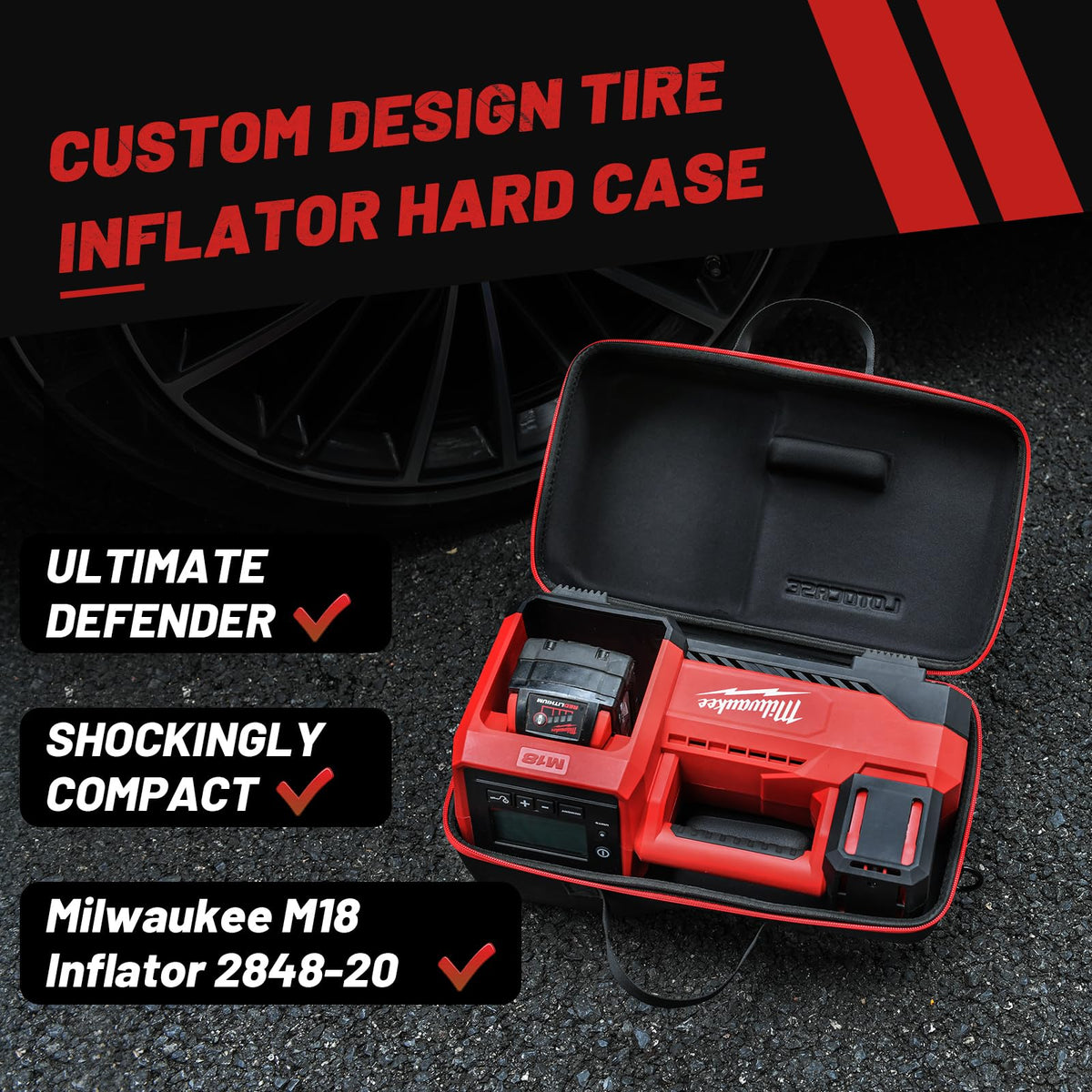 Lotocase Air Compressor Bag For Milwaukee M18 Inflator 2848 20, Air Pump Custom Fit Storage Carrying Hard Case For Milwaukee Too