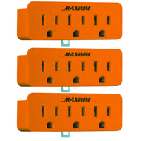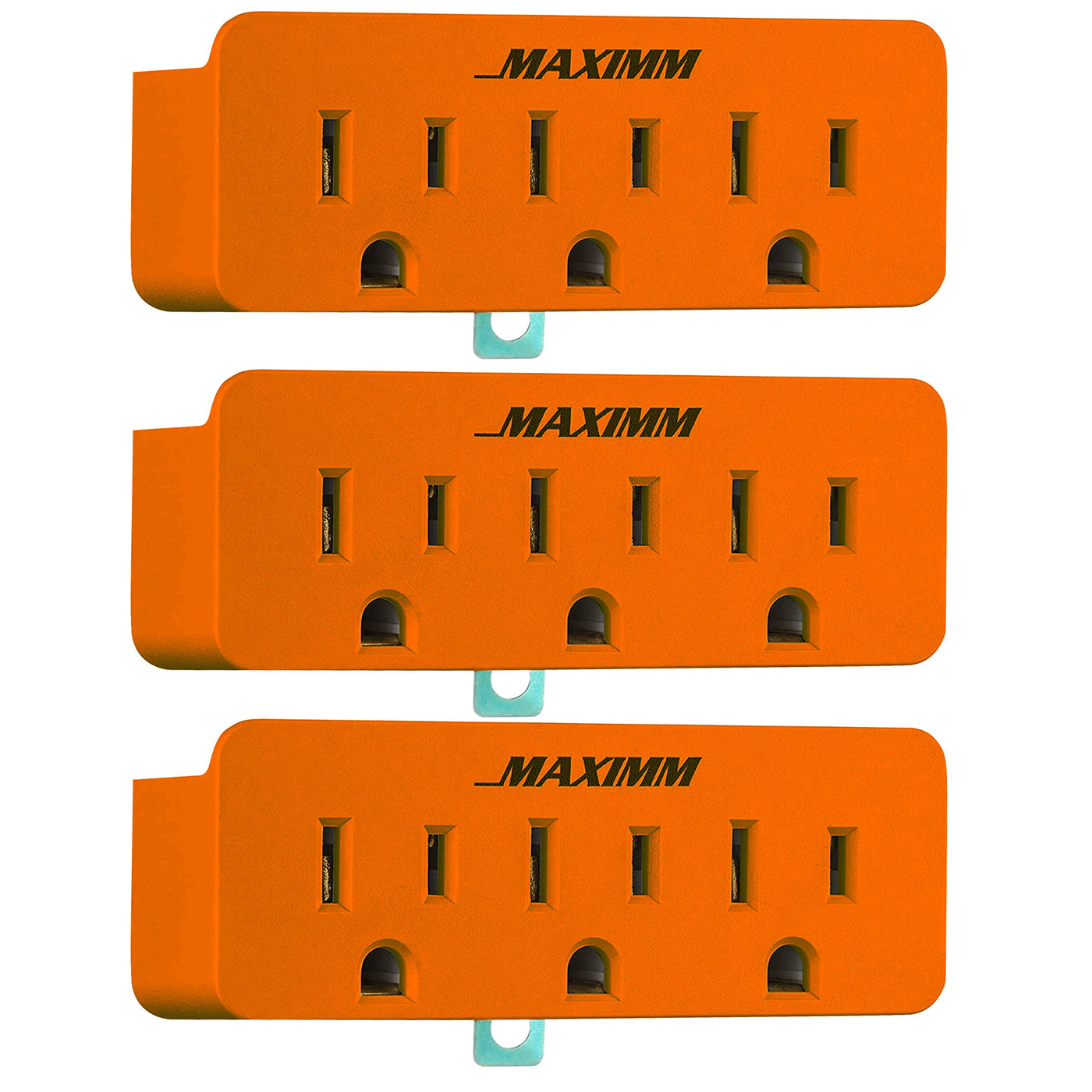Maximm (3 Pack) 3 Outlet Grounding Adapter With Grounding Plug Orange, Turn 2 Prong Outlet To 3 Wire Grounding Outlets, Etl List