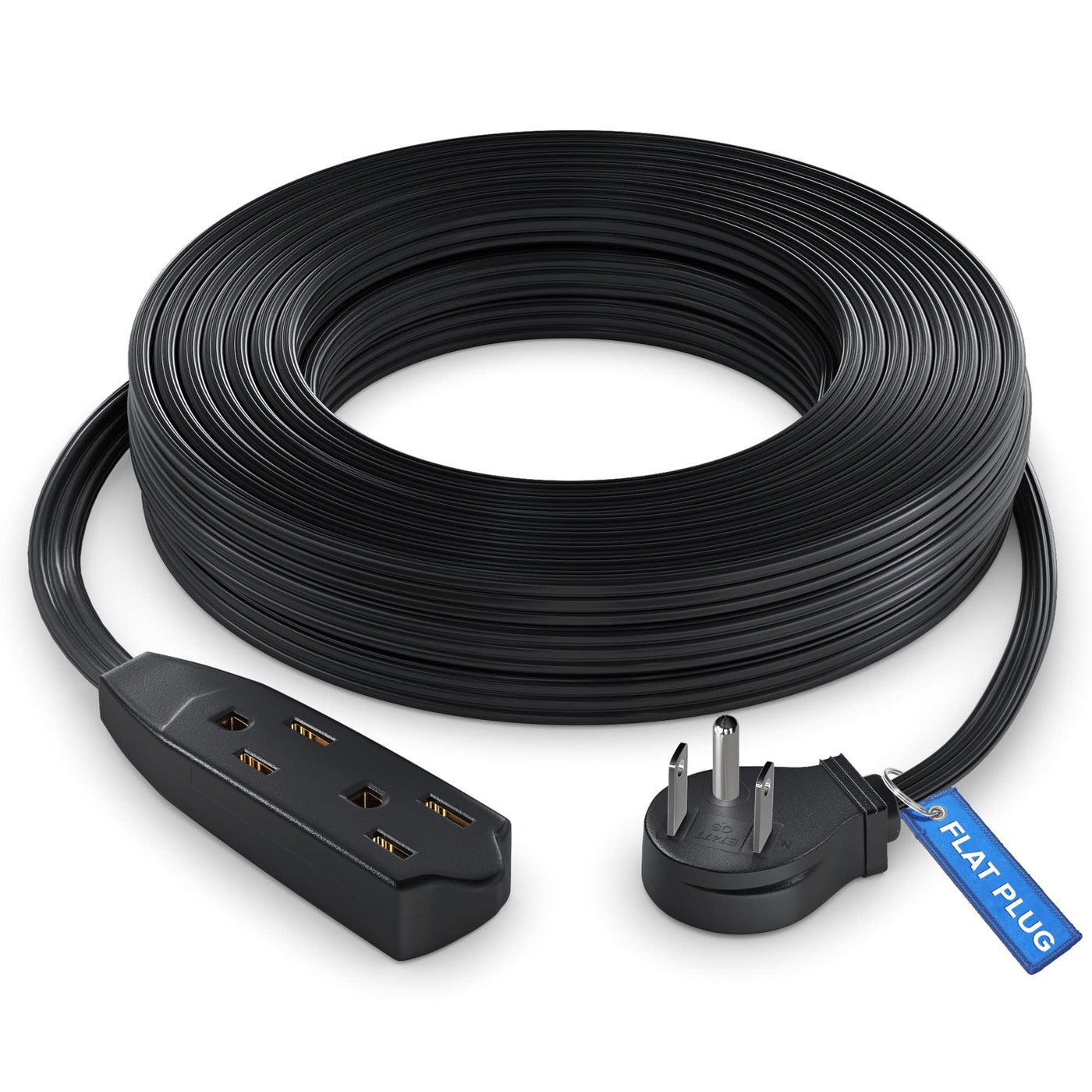 Maximm Cable 25 Feet Flat Plug Extension Cord/Wire, Multi Outlet 3 Prong Angled Plug Extension Cord Black Ul Certified
