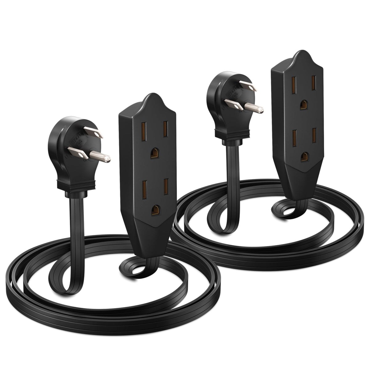 Maximm Cable 3 Feet Flat Plug Extension Cord/Wire, Multi Outlet 3 Prong Angled Plug Extension Cord Black Ul Certified (2 Pac