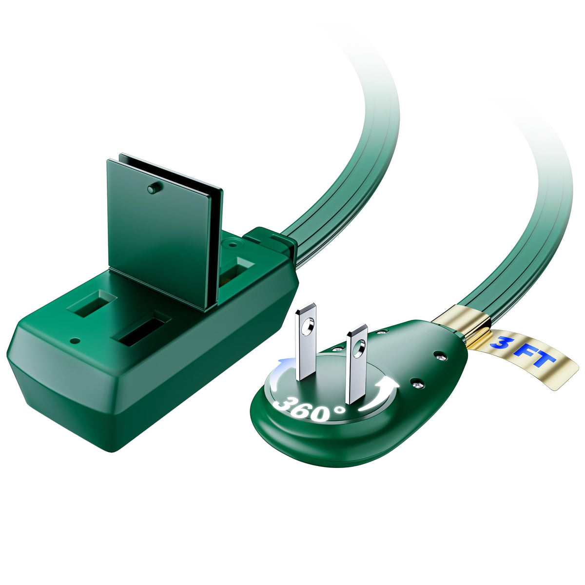 Maximm Cable 3Ft 360 Rotating Flat Plug Extension Cord/Wire, 16 Awg Multi 3 Outlet Extension Wire, 2 Prong With Safety Cover G