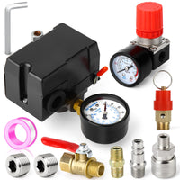 Q: What is included in the package when I purchase this air compressor control valve?A: The package includes a comprehensive set of components: 1 Air Compressor Pressure Switch Control Valve, 1 Air Pressure Regulator, 1 Pressure Gauge, 1 Safety Pressure Relief Valve, 1 Valve Shut Off Switch, a 1/4" × 1/4" Male Pipe, a Nickel-plated Iron Air Plug, a Nickel-plated Iron Air Coupler, 2 Thread Pipe Plugs, a Hex Wrench, and Teflon tape for easy installation.