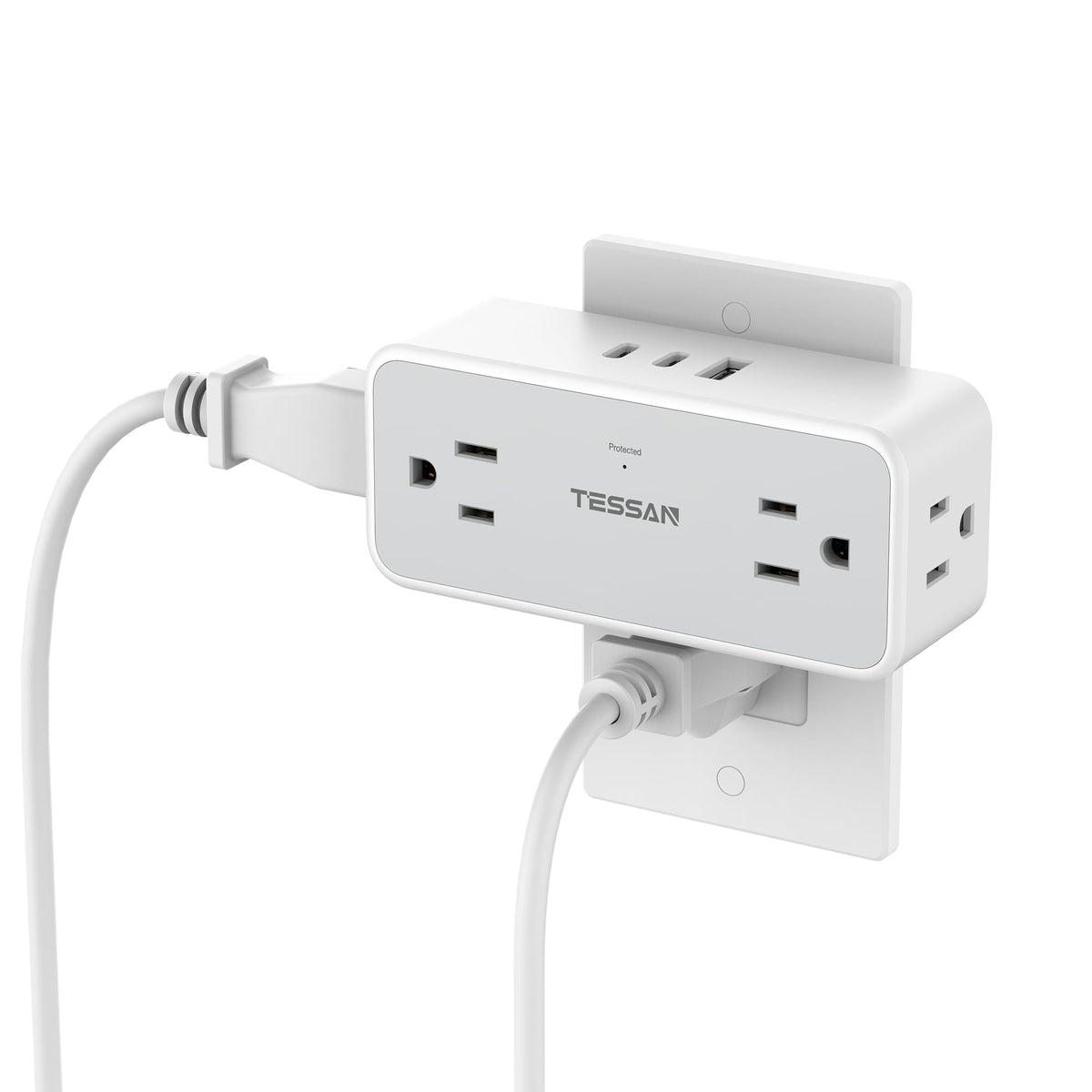 Multi Plug Outlet Splitter, Tessan Surge Protector 4 Outlets Extender With 3 Usb Ports (2 Usb C), 3 Sided Multiple Plug Expander