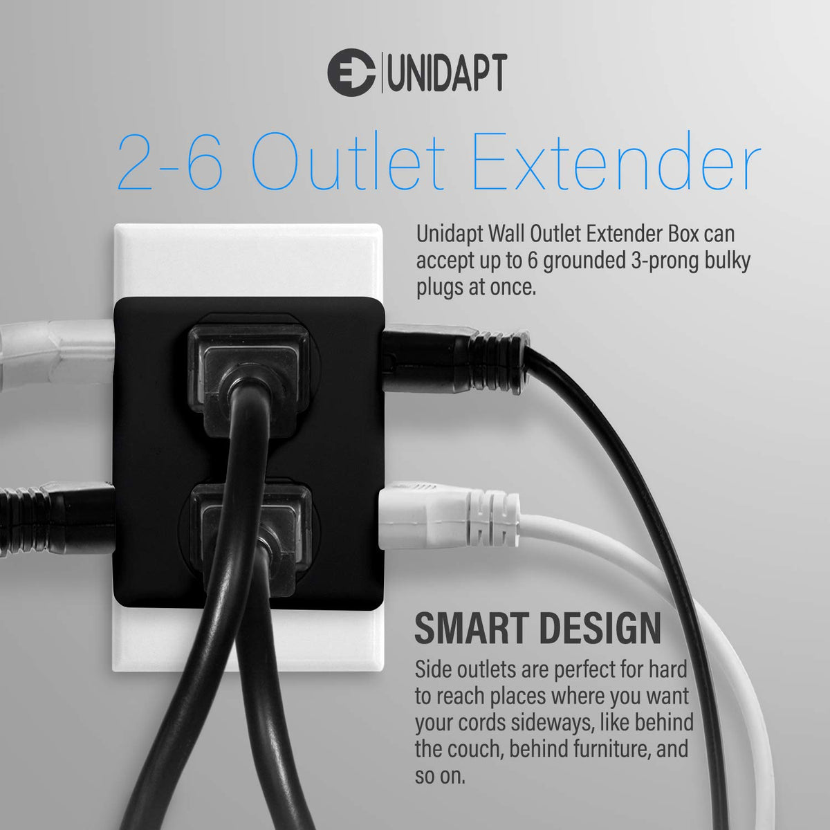 2 To 6 Outlet Splitter Extender Make Your Outlets More Versatile While Still Looking Good. Remove All Those Ugly And Bulky Power Strips. At Unidapt We Really Strive For Stylish Yet Premium Solutions For Travel And Home Electronics. With Our Innovative And Very Safe 2 To 6 Outlet Splitters You Can Free Up Some Space And Organise Your Home Neatly. The Outlet Extenders Are Very Small In Size And Blends In With The Outlets Very Nicely. The Side Outlets Are Perfect For Your Hard To Reach Places In The Kitchen, Bedroom, Hotel Room, Dorm, Office Or Wherever You Need It. These Adapters Makes An Ultimate Gift To A Friend Or Family Member. Product Specifications: Input Voltage: 100-240Vac; 60Hz; Max.Current: 15A; Max.Power Rating: 1875W; Usb Port Output: Dc 5V, Total 3.4A; Item Dimensions: 2.9*2.5& Only 1'' Deep; Package List:: 2 X Electric Wall Outlet Extender; 1 X Instruction Manual; 1 X Paper Box; Lifetime Support Please Note:: Do Not Exceed The Total Rating Or It May Cause Damage To The Unit And Fire Hazards This Will Quickly Become Your Favorite No-Risk Purchase. We Also Offer A Suberb 24/7 Customer Service In Case Of Any Question Or Concerns.