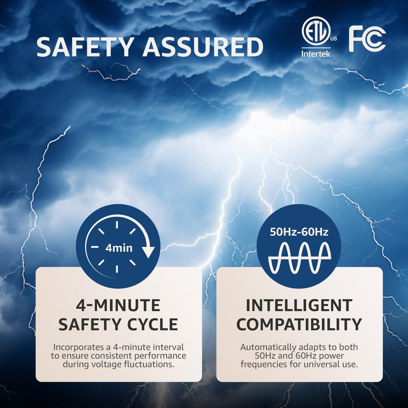 Q: How does the 4-minute safety cycle work in this voltage protector?A: The 4-minute safety cycle is a built-in feature that ensures the voltage protector provides consistent performance during voltage fluctuations. It disconnects the appliance during overvoltage situations and allows a 4-minute safety period before it can be reset, ensuring your appliance is safe.