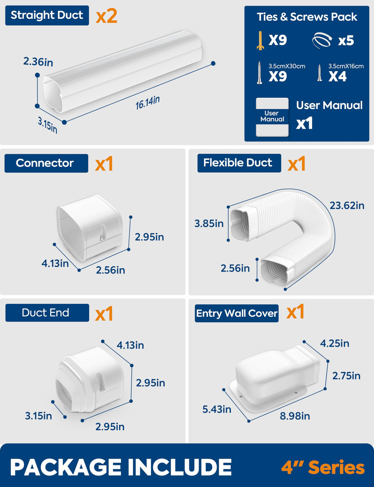 Nouscan 4'' 9.5Ft Mini Split Line Set Cover With Flexible Duct, Upgrade Pp Decorative Minisplit Lineset Cover Kit, Paintable For