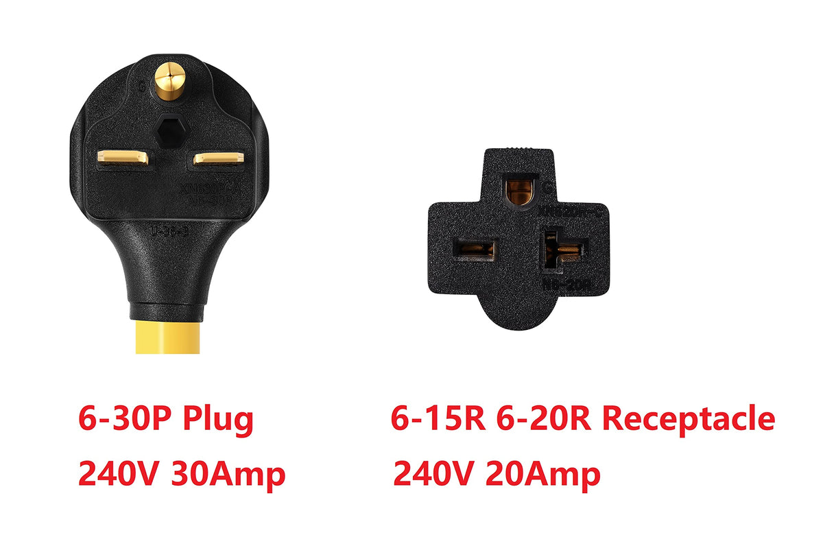 Onetak Nema 6 30P To 6 15R 6 20R 240V 30 Amp Prong Male Plug To 20 Amp 3 Prong Female Outlet Receptacle Generator Welder Dryer E
