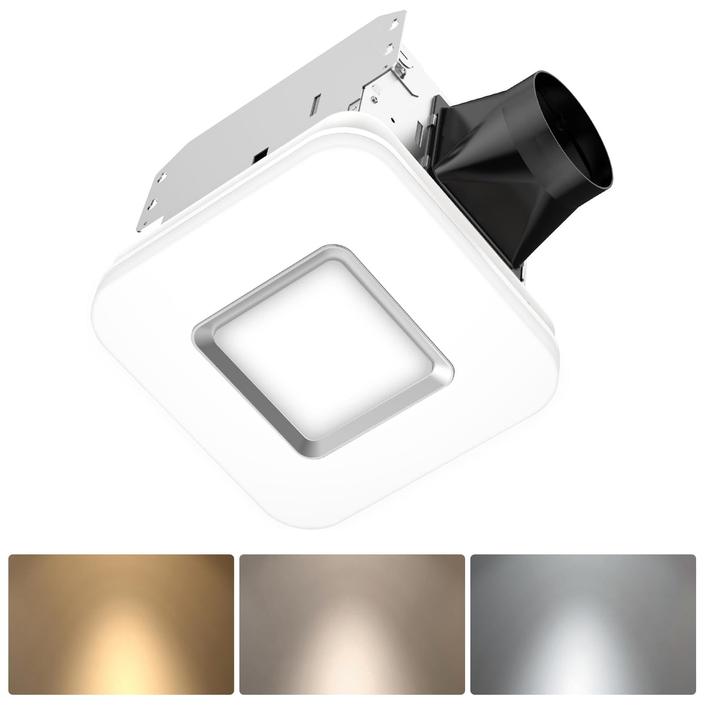 Q: Can I choose the light temperature for the OREiN bathroom fan?A: Yes, the OREiN bathroom fan features a 3CCT LED light system that allows you to select from three color temperatures: 3000K soft white, 4000K bright white, and 5000K daylight, along with a 2200K nightlight option.