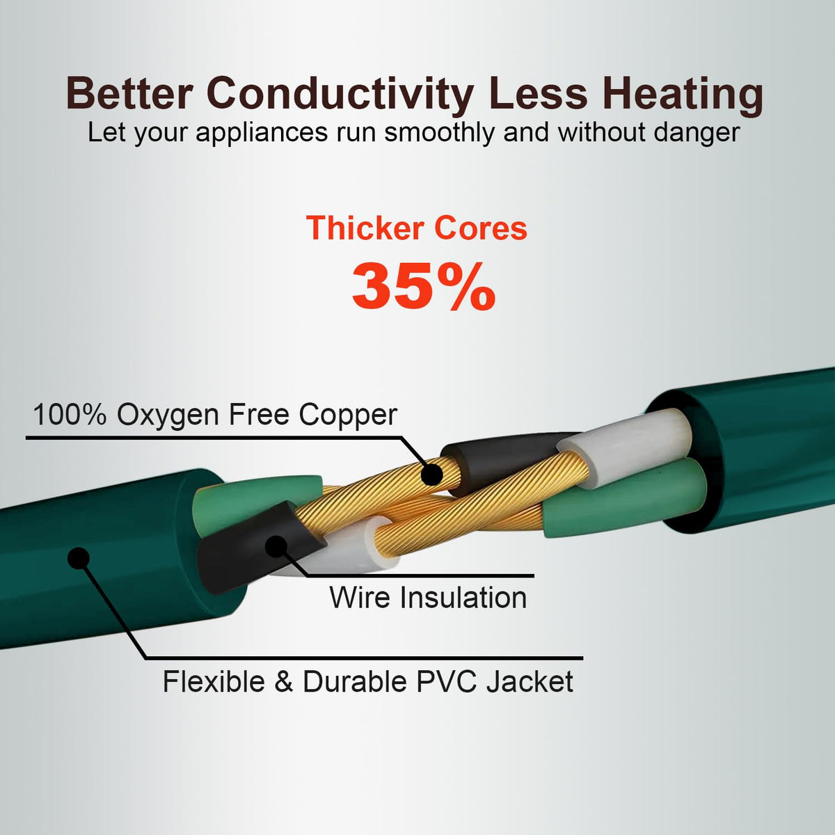Q: What materials are used in the construction of this extension cord?A: The extension cord is constructed with 100% copper for the wiring, providing excellent conductivity and safety, along with proper insulation to prevent overheating.