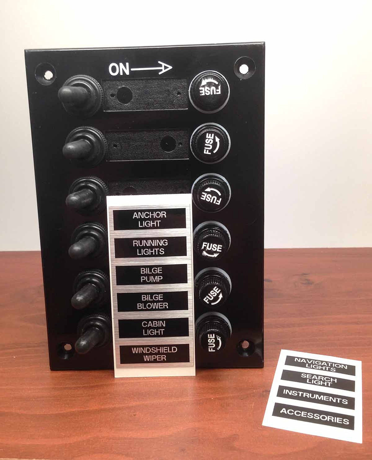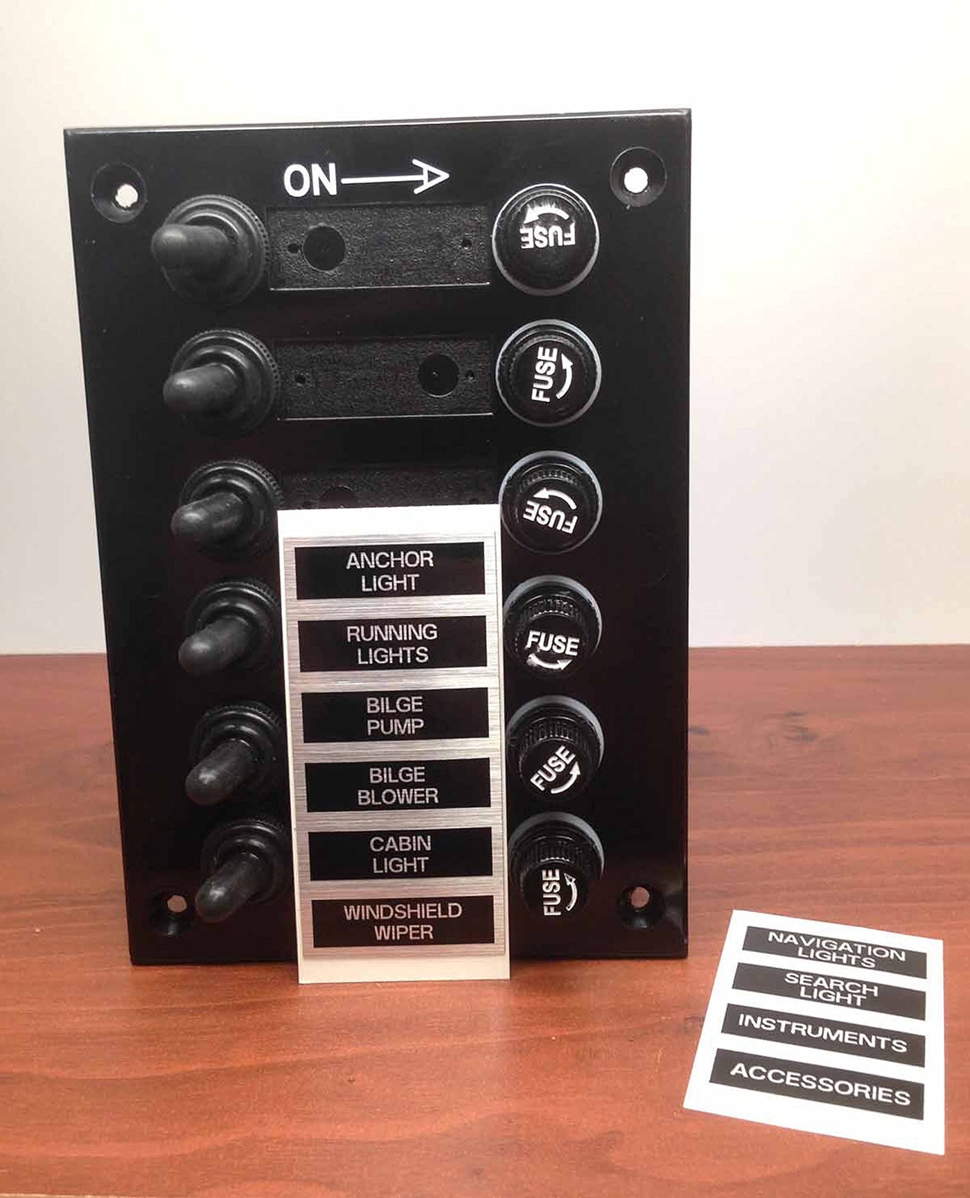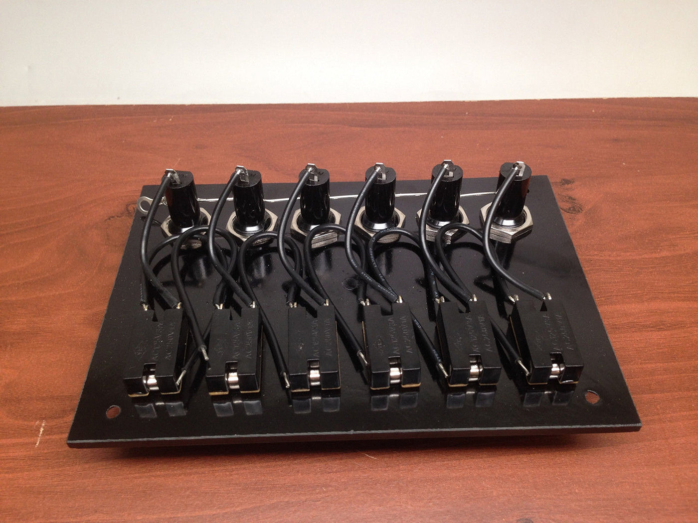 This Is A 6 Gang Bakelite Black Plate Switch Panel. It Is Equipped With 6 X 5A Fuses, Running At 12Vdc. It Features Neoprene Capped Toggle Switches. Dimensions; 4 3/8'' By 6 1/4'' Plate Is 1/8'' Thick. 10 Preprinted Labels Included. 1 Year Limited Product Warranty See Below For Details. Item Number: P10060Rc