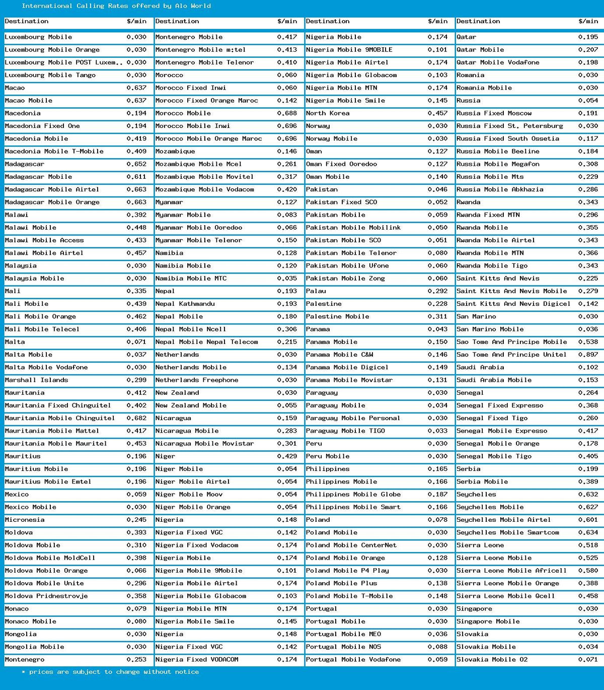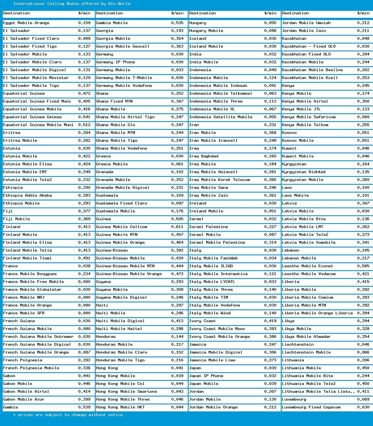 Q: Are there any additional charges when using this calling card?A: Yes, there is a toll-free number that can be dialed from any payphone, but note that an extra charge of 3 cents per minute will apply when using this service. Additionally, calls are billed in one-minute rounding increments.