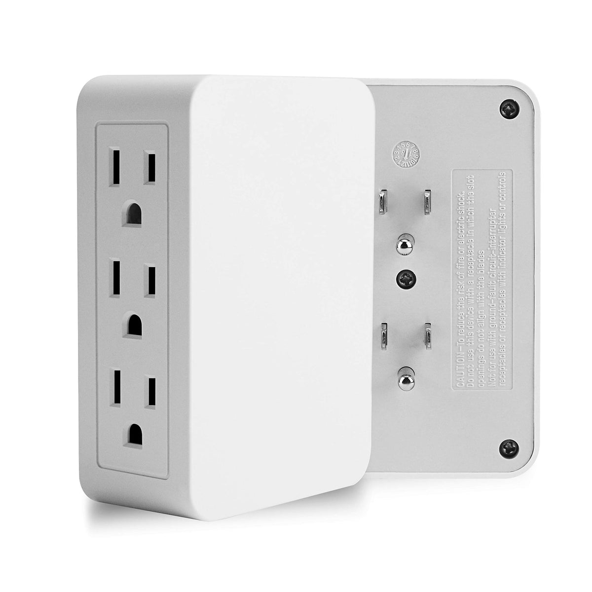 Plug In Outlet Extender,6 Grounded Outlet To The Side,Wall Tap Side Access Adapter,Electrical Wall Plug,Ul Listed,2 Pack