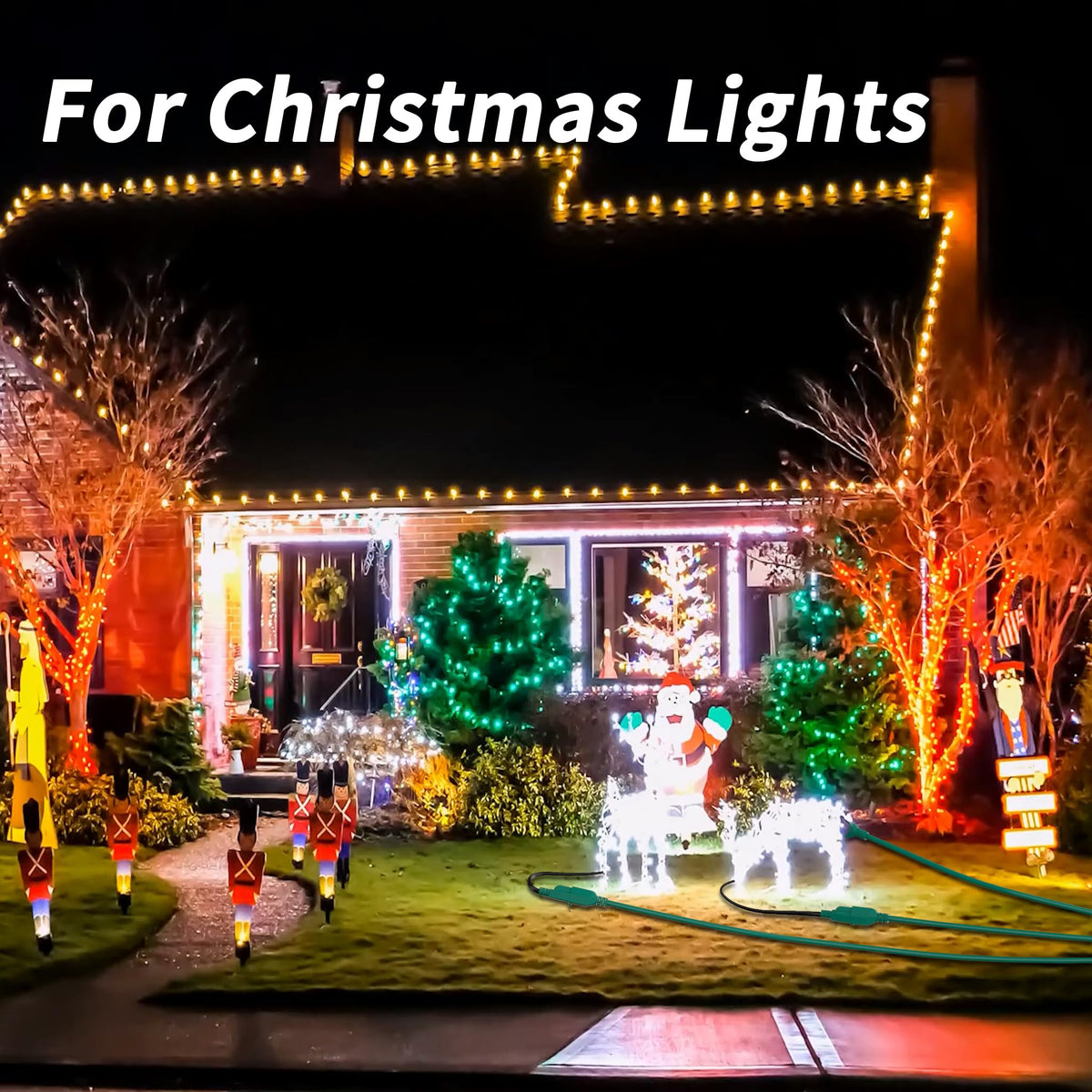 1 To 3 Extension Cord Splitter: 25 Ft Total Length (7+6+6+6); Expands 1 Wall Outlet Into 3 Extended Outlets (Max 13 Ft From End To End) Green Extension Cord Outdoor; 3 Way Extension Cord Splitter Save Outlets And Maximize The Use Of Electrical Outlets And Wall Outlets. Sjtw Weatherproof And Durable: Green Outdoor Extension Cord Waterproof Weatherproof Sjtw Jacket Made Of Thick Vinyl Thermoplastic; Multi Outlet Extension Cord Is Extremely Tough And Can Resist Abrasion, Moisture, Cold, And Direct Sunlight; The Wear-Resistant Pvc Outer Jacket Ensures Its Durability And Long-Lasting Performance, Making It Suitable For Use In All Weather Conditions Heavy Duty And Flexible: 16/3 Outdoor Power Cord Splitter Is Made Of All-Copper Wire( Pure Oxygen Free Copper) High-Quality Materials; Double Pvc Insulation Layer; Split Extension Cord Outside Has Passed More Than 20,000 Bending Tests And 5,000 Plugging Tests Without Fear Of Shaking And Dropping; Vinyl Material Ensures The 3 Outlet Extension Cord Remains Flexible In Cold Weather And Does Not Become Brittle And Break Easily Versatile And Convenient: 7Ft Leader Cord With Triple 6Ft Leg Cords Can Expand 1 Socket To 3 Sockets Use Less Cords Avoid Clutter; Multi Outlet Extension Cord Is Perfect For Landscape Lighting, Halloween Christmas Outdoor Decorations, And Other Outdoor Projects; Also Suitable For Home Indoor Outdoor, Office, Outdoor Camping, Band Equipment And Stage Lighting All Kinds Of Cords Needs Etl Listed And Safety: Outdoor Multi Plug Outlet Waterproof Is Etl Listed; Certifying Its Safety And Quality Standards; 3 Prong Extension Cord Splitter Features A Heavy-Duty Construction With 16Awg, 15A, 125V, 1625W Power Rating; Ensures That Your Equipment Runs Smoothly