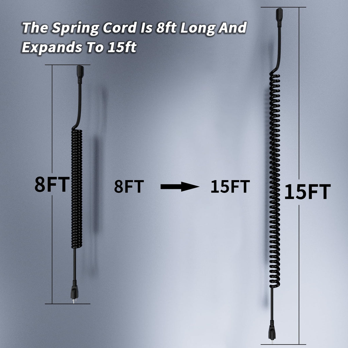 [Specification] Black 18 Gauge Coiled Extension Cord 15 Ft For Charging Electric Pallet Tucks, 10 Amp, 125 Volts, 1250Watts, Male Plug Nema 5-15P, Female Plug Nema 5-15R, Etl/Cetl Listed Retractable Extension Cord 15Ft [Weather-Proof & Flexible] Long Black Extension Cord 15 Ft Jacket Is Wear-Resistant And Durable, 3 Prong Extension Cord 15 Feet Indoor Is Ip65 Waterproof, Weather-Resistant, Heat-Resistant, The Vinyl Power Cord With Coiled Design For Easy Stretching And Retracting, Not Easy To Tangle And Flexible During Use [Safety To Use] Plug And Socket Have A Long Durable Strain Relief, It Pass More Than 20000 Times Bending Without Breaking. Each Coiled Power Extension Cord Indoor Passed 1500V High Voltage Test To Keep Your Appliance In Safe [Multipurpose] Black 15 Foot Retractable Extension Cord 18Awg For Home And Office Use. This Three Prong Indoor Coiled Extension Cord 15 Ft Waterproof Is Ideal For Hdtv, Computers, Monitors, Scanners, Printers, Projectors And More Equipment [Reliability] You Will Get 3 Years Promise For This 15 Ft Extension Cord, 24 Hours Response Friendly And Reliable Customer Service, 30 Days Return And 12-Month Replacement Of Appliance Black Indoor Coiled Extension Cord Waterproof 15 Ft