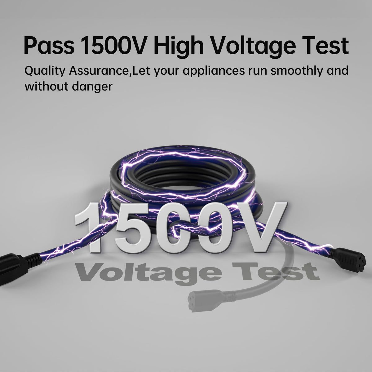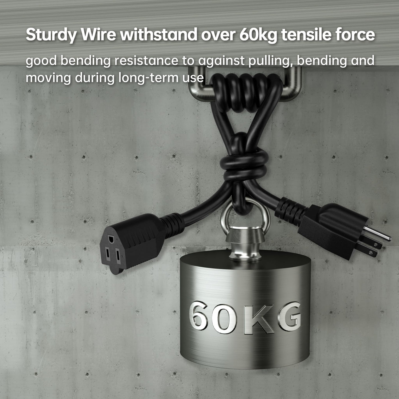 Q: How does the safety of the PlugSaf extension cord compare to other brands?A: The PlugSaf extension cord is built with safety in mind, featuring a durable strain relief that has passed over 20,000 bending cycles without breaking. It also underwent a 1500V high voltage test for added safety.