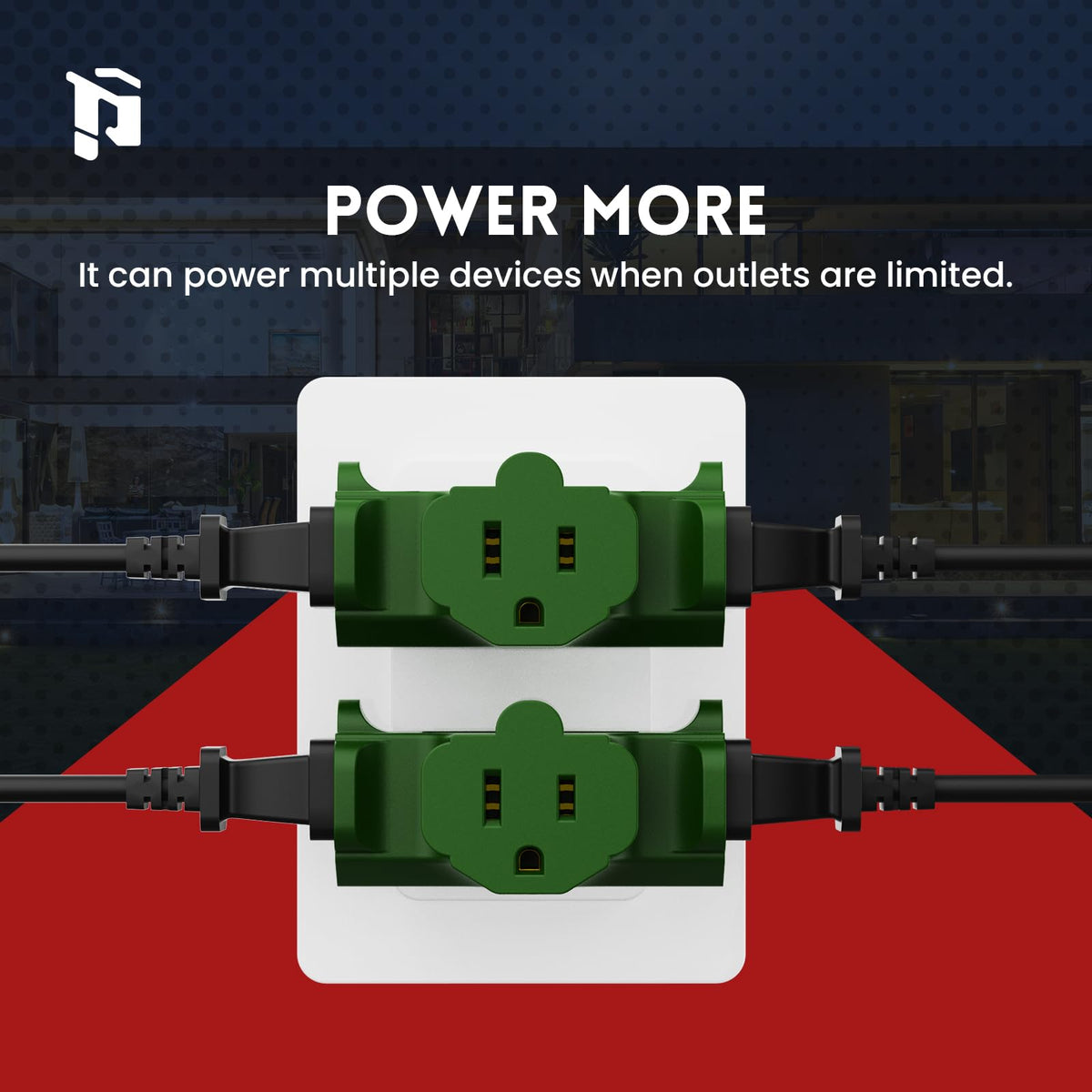 Q: Can I use the PLUGTUL 3 Way Plug Adapter outdoors?A: Yes, the PLUGTUL 3 Way Plug Adapter is designed for both indoor and outdoor use, allowing you to conveniently power multiple devices in various environments.