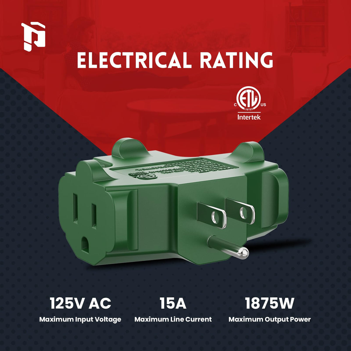 Plugtul 3 Way Plug Adapter, 3 Plug Wall Adapter, 3 Prong, Grounded, 15A, 1875W, Multiple Plug Expander For Home, Outdoor, Etl Li