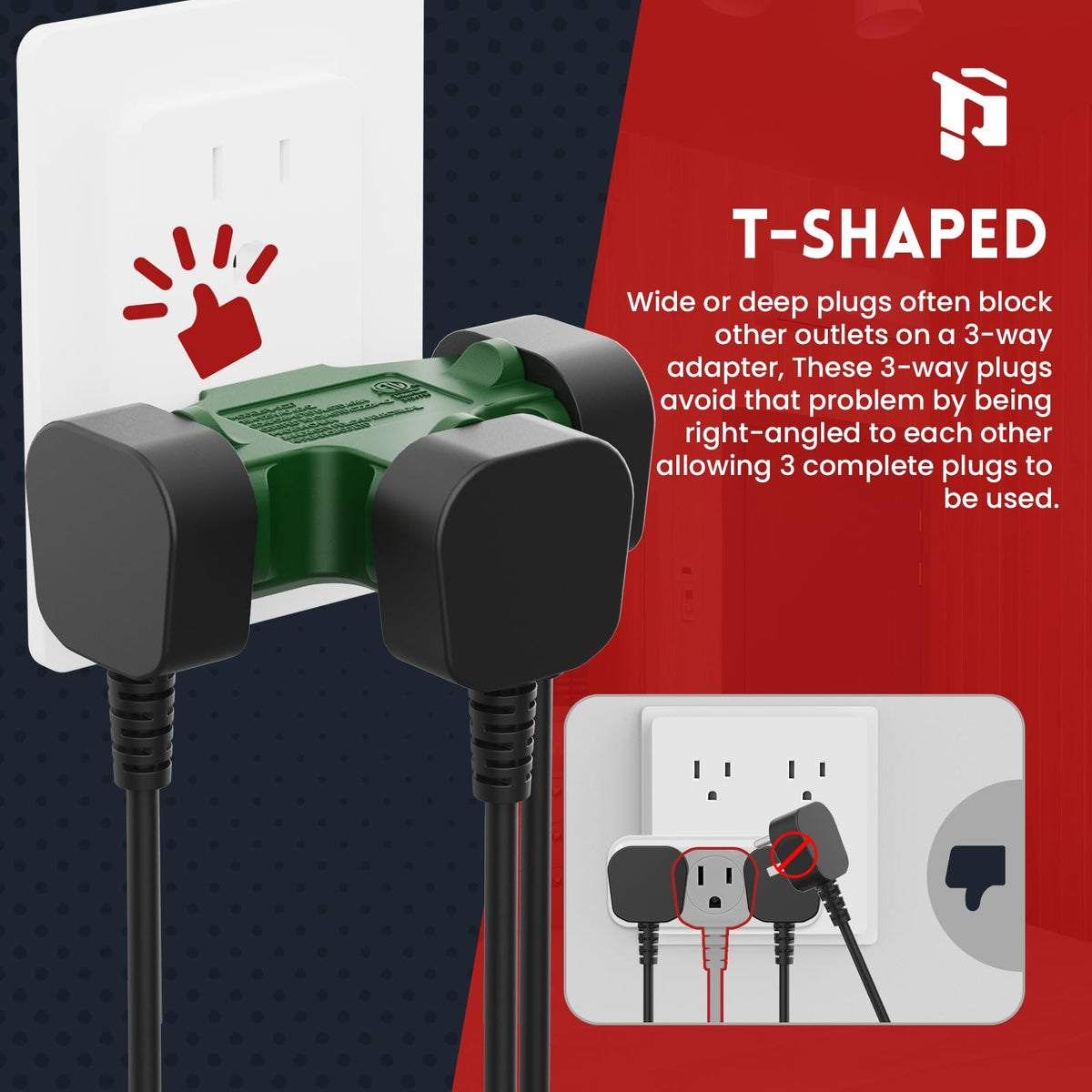 ??3-Way Plug Adapter Converts A Single Outlet Into Three Independent Power Sockets, Allowing You To Power Multiple Devices Simultaneously. | ??The T-Shaped Wall Outlet Extender Features A Unique Design Reminiscent Of A Block Of Cheese. This Configuration Allows For Optimal Placement Of Outlets On Three Different Sides, Enabling You To Plug In Three Bulky Power Adapters Simultaneously Without Any Obstruction. | ??The 3-Way Plug Adapter Is Lightweight And Compact, Perfect For Business Trips, Vacations, And Travel. Its Smart Design Easily Fits Into Backpacks, Handbags, Or Luggage, Making It A Must-Have For Travel And Daily Use. | ??Ideal For Home, Office, And Travel, It Provides Seamless Charging For Your Phone, Laptop, Tablet, And Other Devices, Keeping Everything Powered And Connected. | ??Etl Listed, Ac 15A 125V 60Hz 1875W, Rating For Safe Use On Most Types Of Outlets. Recommended Indoor Use.