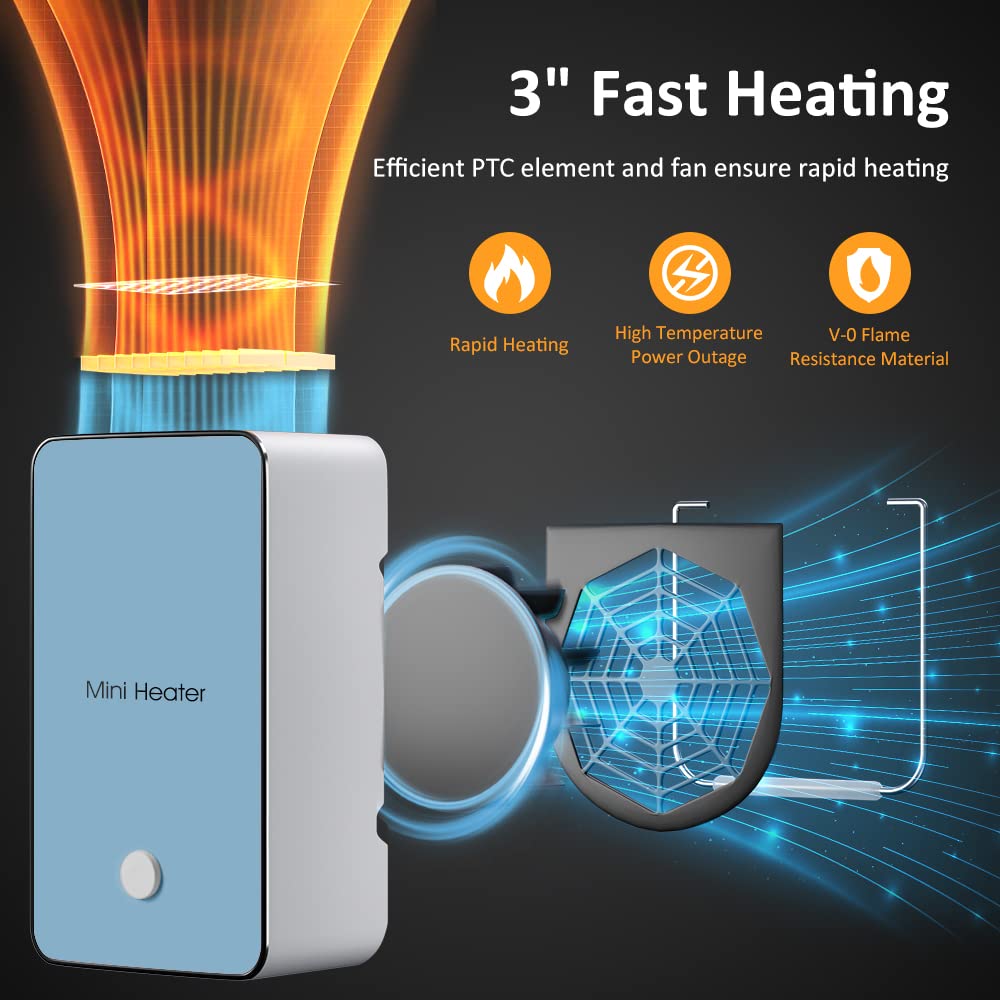 Portable Space Heater Youcidi Mini Desk Heater Electric Fan Air Warmer For Room/Office/Desktop Blue