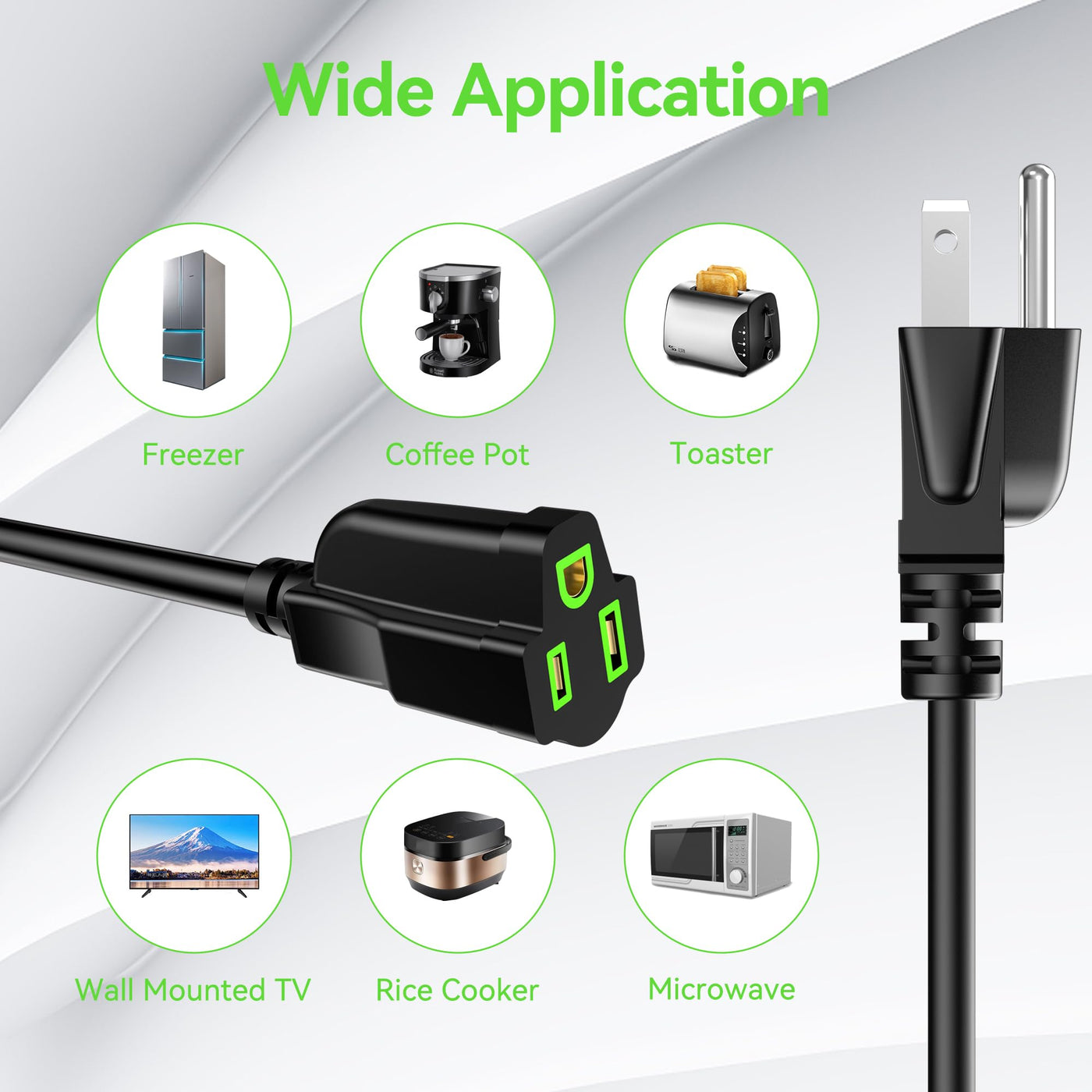 Dual Certification: Ul Listed And Etl Listed. Meeting The Highest Security Certification In The United States. Every Thread Has Been Subjected To A High Pressure Needling Test. Buy With Confidence | Heavy Duty: 100% Oxygen-Free Copper, Thickened Pvc, Waterproof, High Temperature Resistant, Flexible, Folding Resistant. The Package Contains 15 Zip Ties | Outdoor & Indoor: Suitable For Shed, Outdoor Lights, Timers, Christmas Decorations, Bedroom, Kitchen, Gaming Room, Server Room, Home Or Office Use. Perfect For Uninterruptible Power Supply (Ups) | Specifications: Standard 3 Prong Plug, 16Awg Pure Copper Core, Sjtw, 3C, Ft2, 13Amp, 125V-300V(Max) | Dynamic Use: When Your Appliance Plug Cannot Reach The Socket, Use An Extension Cord To Reach It Easily. Either Have An Extended Cable For A Variety Of Appliances, Or Keep It In Your Toolbox For Backup. At Parties And Important Holidays Such As Christmas, Use A Power Extension Cord To Easily Control Your Lights And Appliances