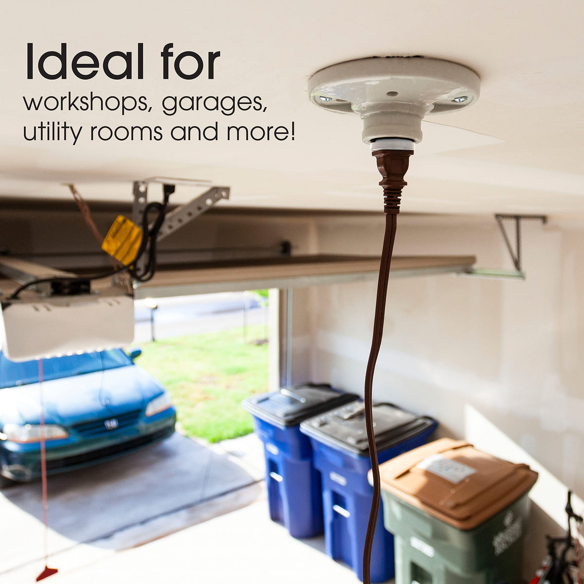 Q: What types of light sockets are compatible with this adapter?A: The Power Gear Polarized Handy Plug adapter is designed to fit standard, medium-based light sockets, making it versatile for use in various indoor locations such as garages, workshops, and utility rooms.