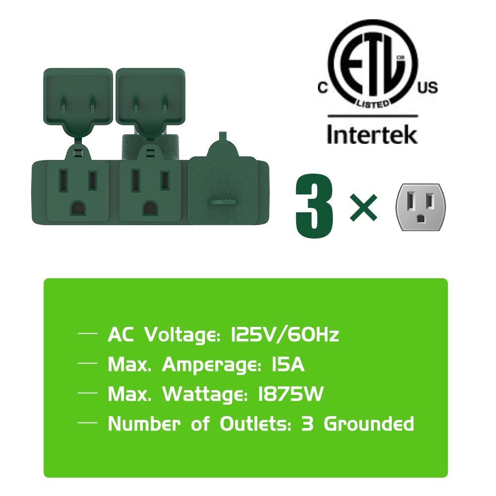 Qitim Outdoor Plug Extender, 3 Outlet Splitter With Safe Cover, Heavy Duty Waterproof Multi Plug For Christmas & Holiday Decorat