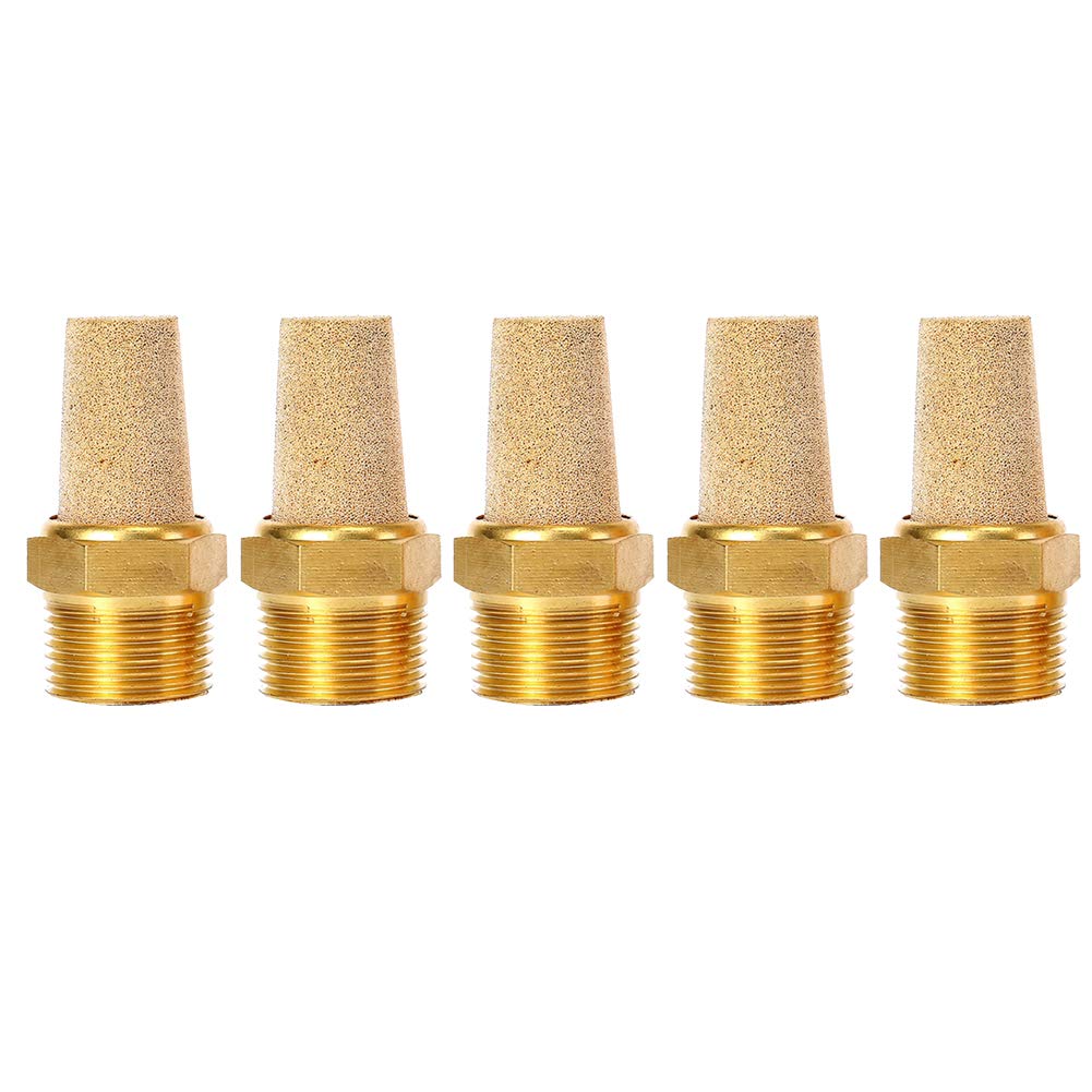 Quickun Air Pneumatic Mufflers, 3/8'' Male Thread Sintered Bronze Exhaust Muffler Silencer (Pack Of 5)