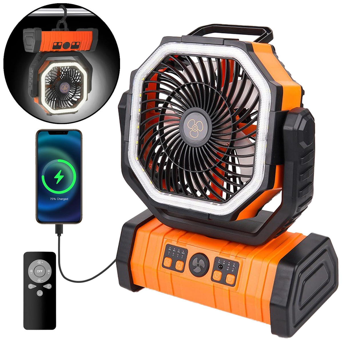Rechargeable Fan,Operated Camping Battery Powered Fan With Hook&Bright Led Light,Remote Control Timer Auto Oscillation Cordless