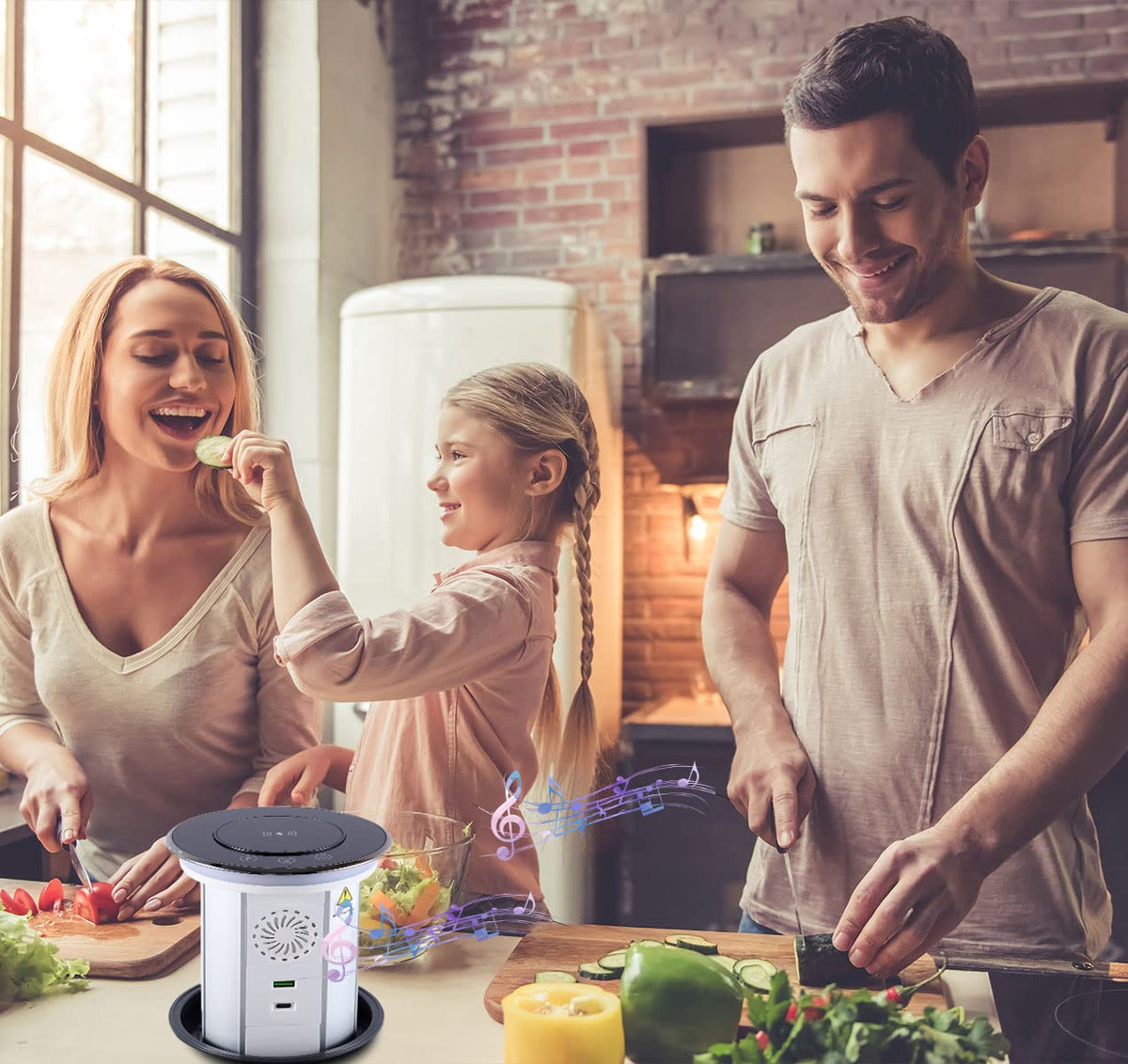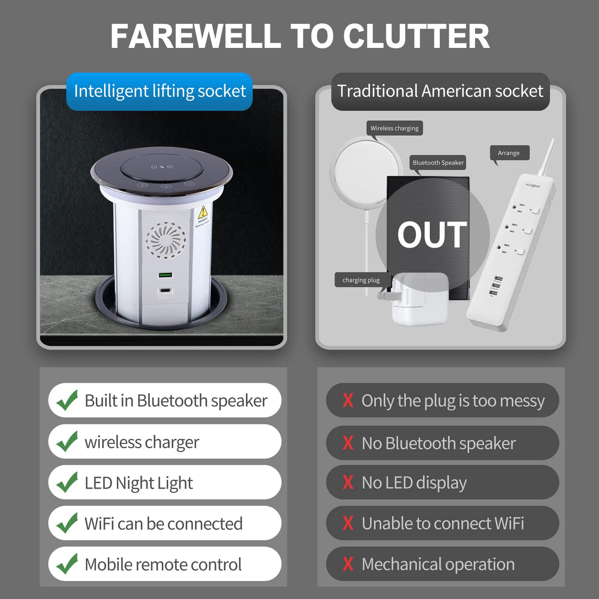 Redcomets Pop Up Outlet For Countertop With Mobile App Remote Control, 4.9''Space Saver Recessed Outlet With 3 Outlets,2 Usb Ports And Speaker,Pop Up Electrical Outlet With 15W Wireless Charger Station