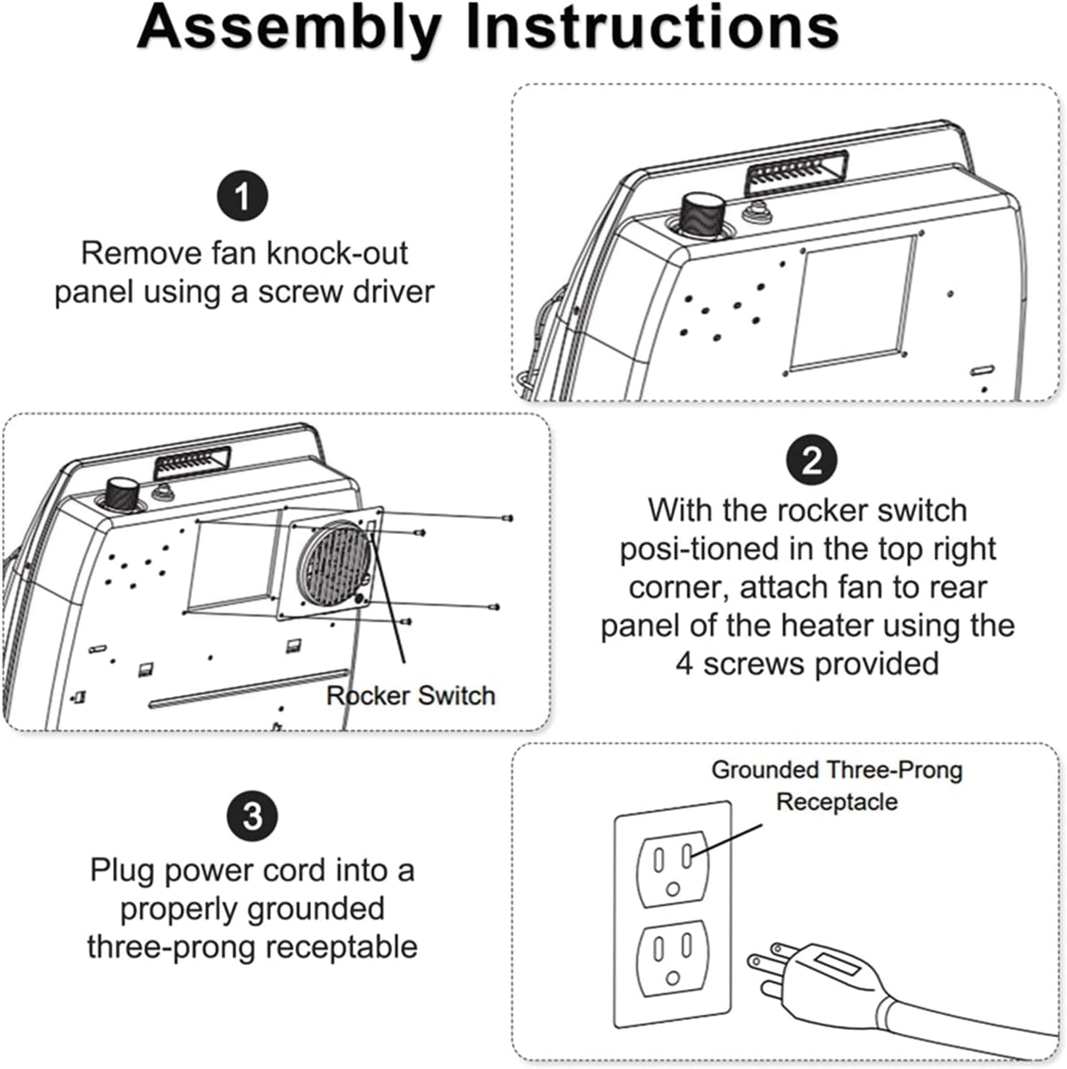 Q: What are the dimensions and power requirements for the Vent Free Wall Heater Fan?A: The dimensions of the Vent Free Wall Heater Fan are approximately 6-1/8 inches wide, 5-1/2 inches deep, and 5-5/16 inches high. It operates on a standard 120V power outlet and has a power rating of 18 watts with a current draw of 0.15 amps.