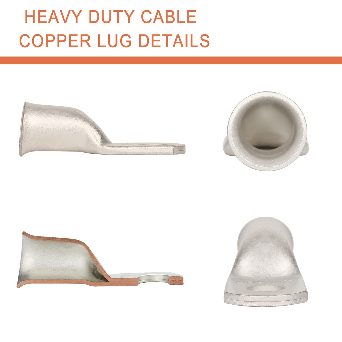 Q: How do I use these tinned copper wire lugs?A: These tinned copper wire lugs can be easily crimped or soldered for secure connections. The flared opening design allows for easy insertion of cables, ensuring a snug fit.